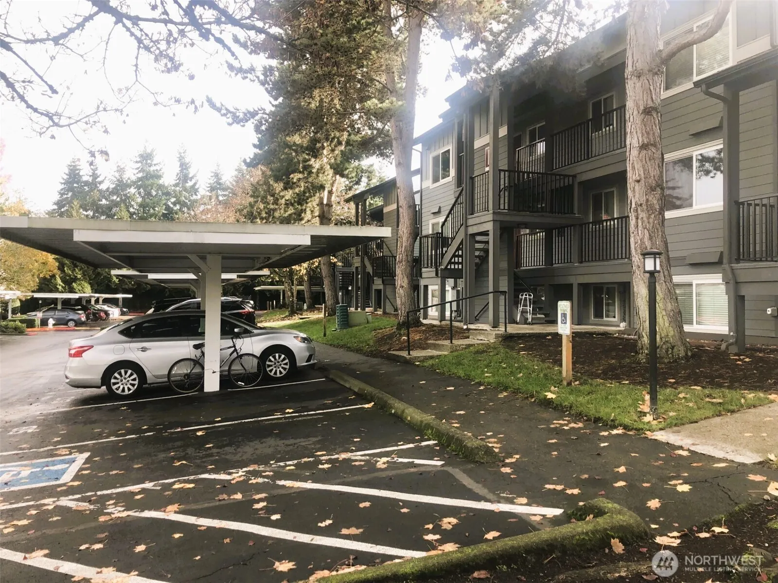 Capture the charm, love the space, live the location. You are on the top floor, and it feels peaceful, private and cozy. You are surrounded by well-maintained landscaped grounds and tranquil, man-made creek beneath the balcony and primary bedroom. Amenities include radiant heating, laundry in the unit, and assigned carport. There is plenty of guest parking around the complex. Community pool and gym are on premises. Condo with vaulted ceiling feels airy and light. The closets are spacious and there is plenty of storage room. Remodeled kitchen has white quartz countertops. Your neighbors are nice and caring. You are only 4 miles away from the Kirkland Google Campus, and 7 miles from Microsoft. One mile from new Totem Lake Shopping Center (Trader Joe’s, Whole Foods!), and less than a mile from the Park & Ride where you can take the bus to Seattle or Redmond. The local bus stop is two steps away from the condo complex. Take your bike or walk to Juanita Village and Beach. A supermarket is right next door. Great schools of Lake Washington District. One cat is OK. Available mid March