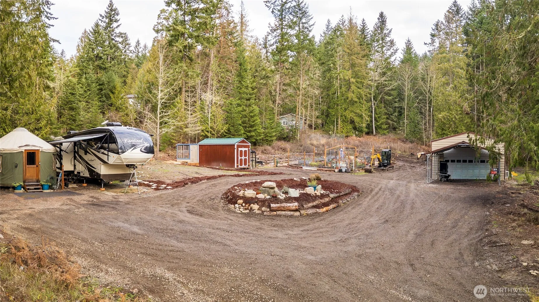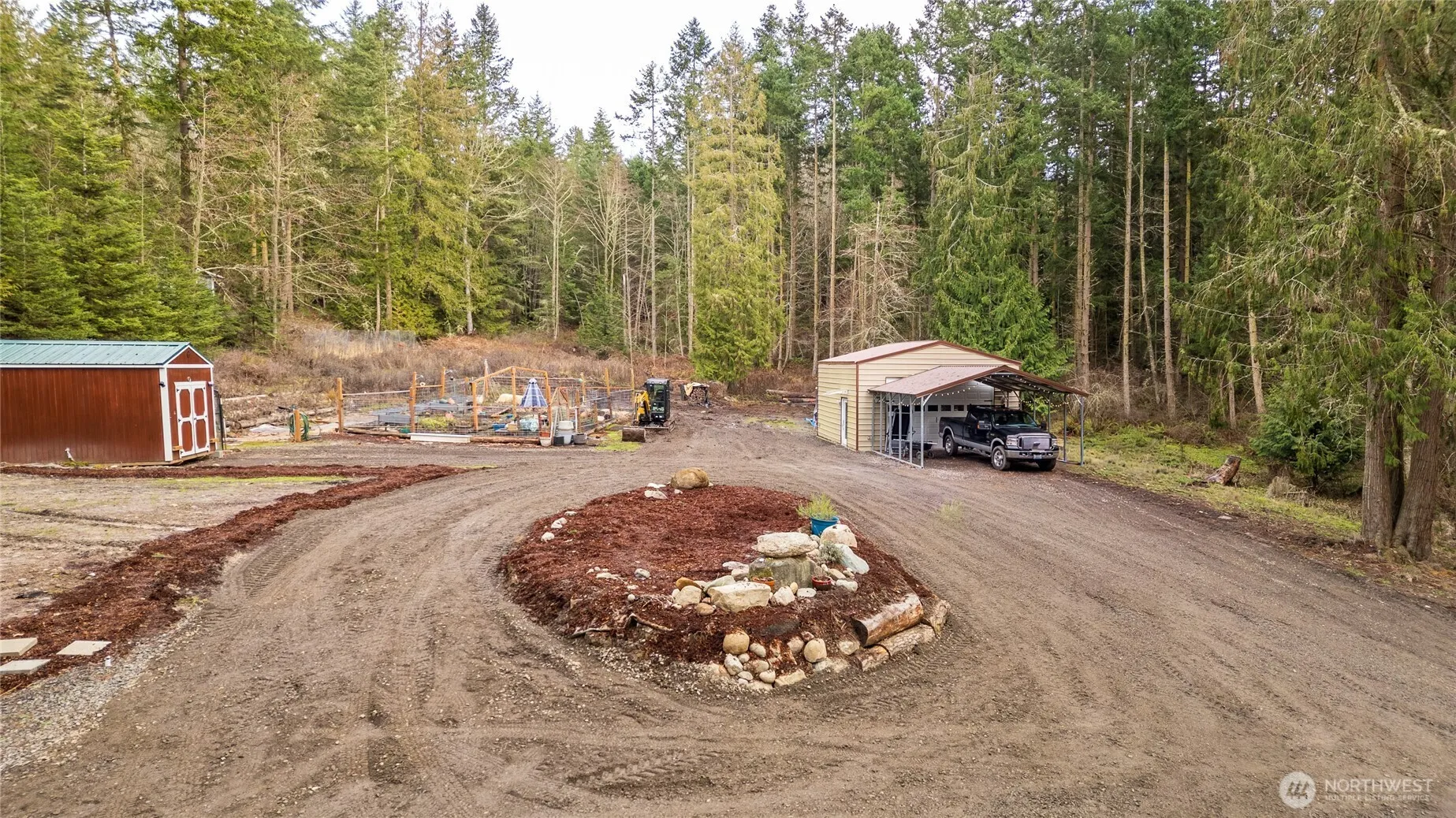 Numerous infrastructure and site improvements have been completed to ensure a seamless “plug-and-play” experience for your future residence. The property features a workshop and garden shed, all connected to city water and power. Located privately away from the main road, this site presents an excellent development opportunity in the desirable Happy Valley area, just a few miles from downtown Sequim. The fully permitted 25×25 heated workshop includes a large, oversized garage door that allows natural light through a row of windows. Septic permits have been approved for a three-bedroom residence. The fully fenced garden boasts fruit trees, grapes, berries and many herbs. Near the garden is a dedicated garden shed, attached greenhouse, and secure enclosures suitable for poultry or rabbits. Enjoy frequent visits from local wildlife such as deer, owls, eagles, and raccoons. In the past two years, over 120 varieties of iris have been planted, along with numerous Sitka spruce trees and native plants. This property offers the perfect combination of privacy and accessibility. Don’t miss this rare opportunity to own your private retreat.