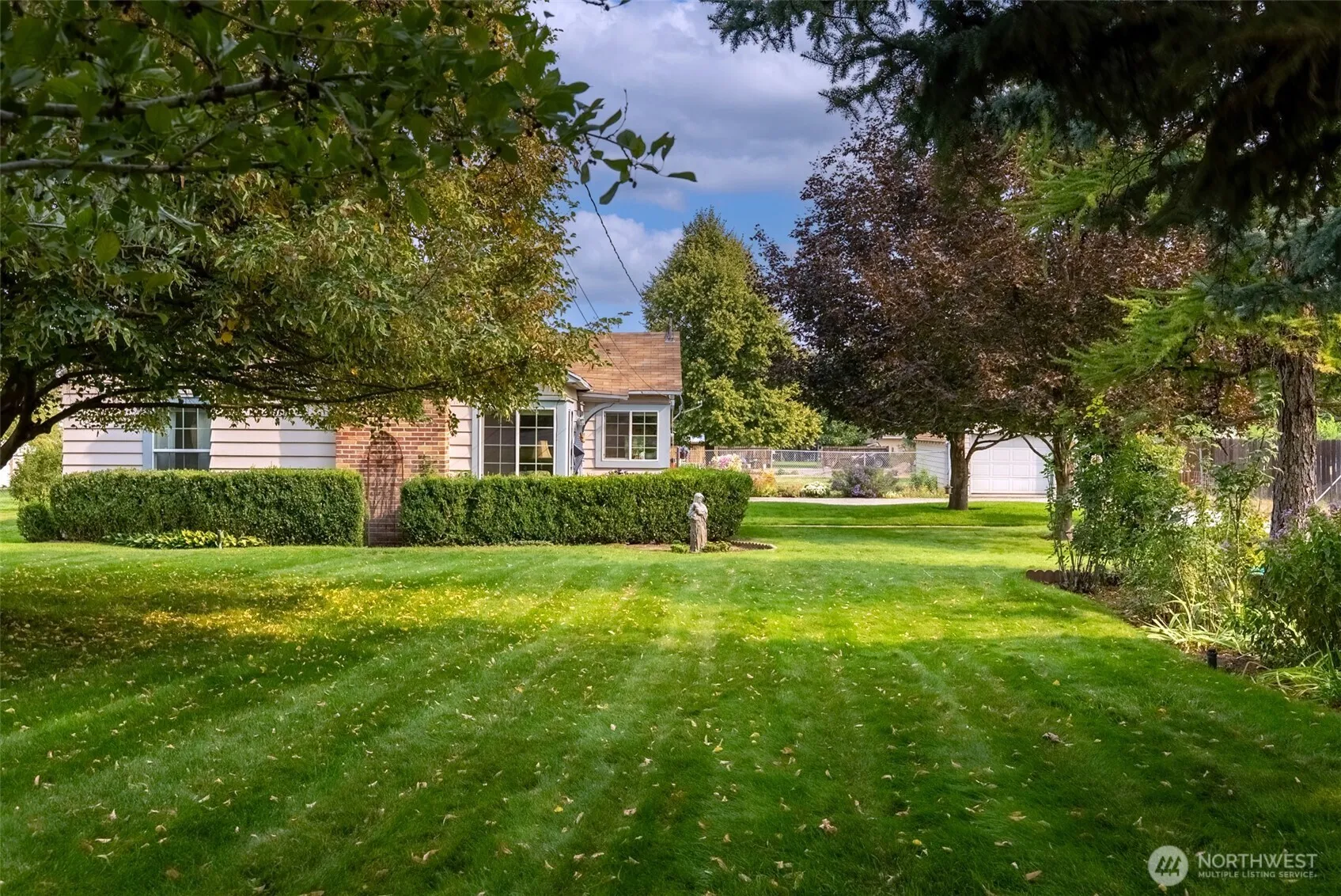 Step into seamless living in this lovingly maintained & updated 1948 gem, where pride of ownership shines throughout. This 3-bed, 1-bath home offers tranquility & character in equal measure. The large picture windows flood the space w/ natural light! SS appliances- 2 wood burning fireplaces. Step outside to a covered patio that opens to a flat, manicured, park-like double lot with mature landscaping—ideal for entertaining or peaceful solitude. Private well w/ sprinkler system serves outside & city water serves the house. A 1-car garage, massive 4-bay shop & tons of parking provide room for all your hobbies & vehicles, making this property a rare find that blends character, convenience & space in one inviting package.