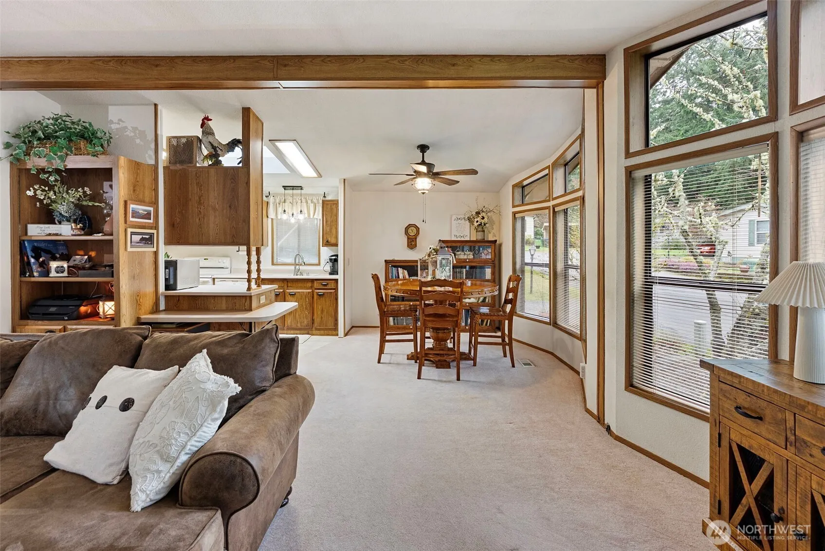 Minutes from downtown Gig Harbor, this home is located in Hillcrest Manufactured Home Park, a 55+ community. This two-bedroom home offers 1,148 sq ft of living space. The entry opens into the living room featuring a cozy wood stove. Beyond that is a dining area connected to the open and bright kitchen. The primary bedroom features a large ensuite bath with a soaking tub. Lots of storage in the double closets. A second bedroom and a ¾ bath provide comfortable accommodations for guests. A dedicated laundry room opens to a pet run in the side yard. A heat pump provides AC for hot summer days. Space rent covers water, garbage, and septic. Very close to the popular shopping corridor – Target, Costco and etc.