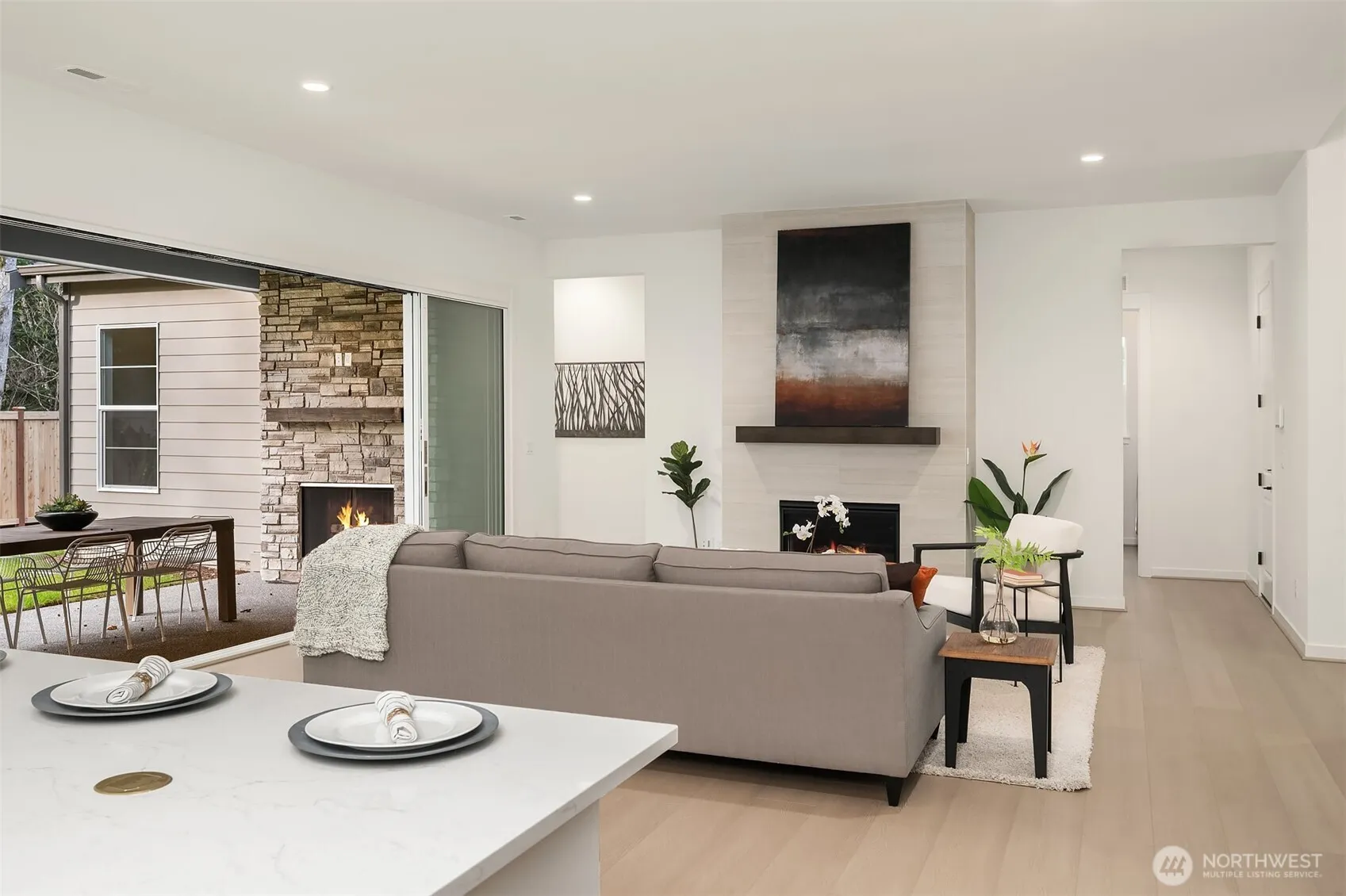 The Dorado is situated on a premium corner location backing directly to a serene, private greenbelt. This offers a rare combination of privacy, natural beauty and tranquility. An airy foyer welcomes you and draws you into spacious living area and expansive covered patio through dramatic multi-stacking doors, where an outdoor fireplace and lush greenbelt views set the tone for effortless indoor-outdoor living. The designer kitchen is a true centerpiece – anchored by a large island with breakfast bar, KitchenAid appliances including a double oven, generous counter and cabinet space, and a sizable walk-in pantry. A bright casual dining area overlooks it all, keeping the home’s open feel intact. The serene primary suite is a private retreat, complete with a king-size walk-in closet and a spa-inspired bath featuring dual-sink vanity, a luxe shower, and a private water closet. The flexible Multi-Gen Suite is ideal for visiting family, a live-in caregiver, or a private guest retreat — providing independence and connection under one roof. Enjoy the Regency Lifestyle with access to our community clubhouse amenities including indoor pool, Club lounge, Pickleball courts, Bocce ball courts, Fitness and movement studio, dog park and pet wash station and outdoor social patio spaces.