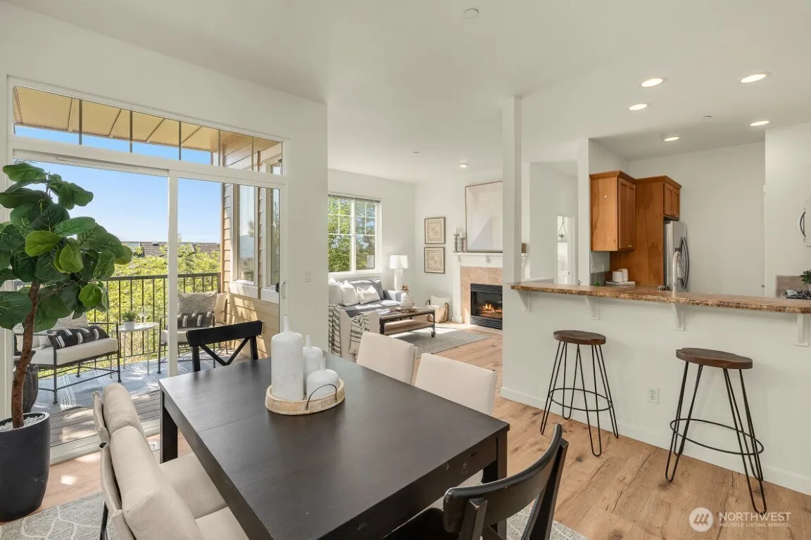 Available March 1st. Welcome home to this tastefully updated condo in the heart of Issaquah Highlands. Clean and contemporary touches throughout. High ceilings and open floor concept in the main living spaces with beautiful Olympic Mountain views! The kitchen is situated in the center of the main floor and opens to the living and dining, great for entertaining. Spacious dining room with quick access to deck. Cozy living room with gas fireplace. Lovely primary room with large walk-in closet and attached bathroom. Plus, secondary bedroom and hall bathroom. Two parking spots, 1 in the garage and 1 in the driveway plus ample guest parking spaces. Prime location, close to restaurants and parks and easy access to freeways. Pets considered case by case.