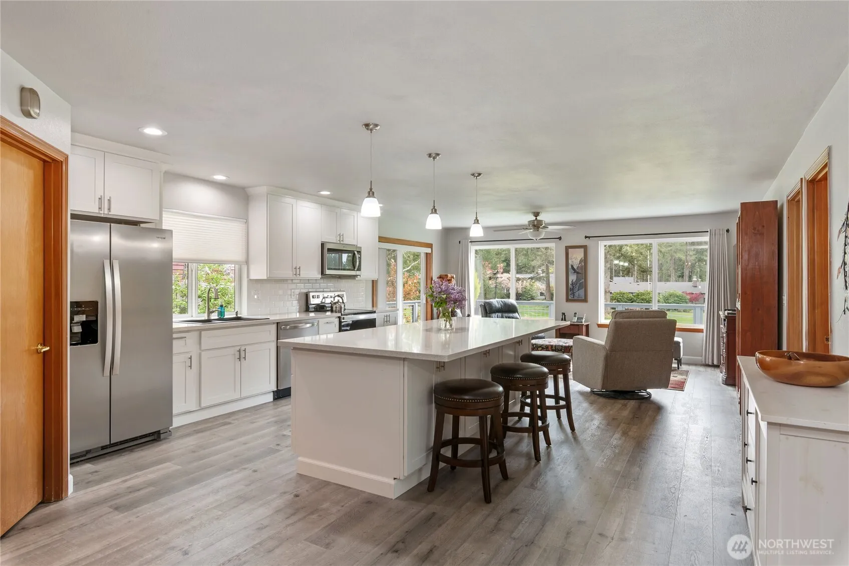 Wow! This amazing golf course home right on the green is the perfect blend of style, space, & community with gorgeous expansive golf-course views. Enjoy main-level living with light-filled, classic-modern design & a spacious primary suite. Downstairs offers a huge 2nd bedroom, rec room, & bonus room ideal for guests, hobbies, or multi-gen living. Completely remodeled from the studs out – new roof, siding, electrical and full interior redone. Gorgeous quartz kitchen, walk-in pantry, new appliances, new HVAC, roof, siding, windows—everything’s done. Step outside to a beautifully landscaped yard & expansive deck overlooking the course. HOA includes unlimited golf for residents & fun clubhouse activities, including community gardens, trails and club house. Here your not only buying a home, you’re buying a lifestyle with a beautiful community minutes from Hood Canal.