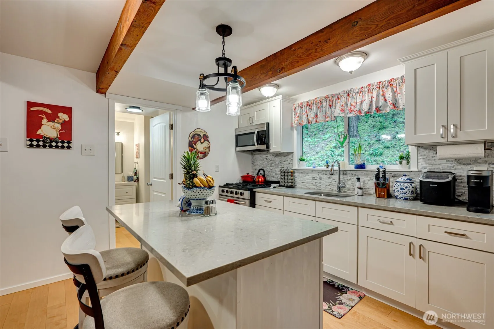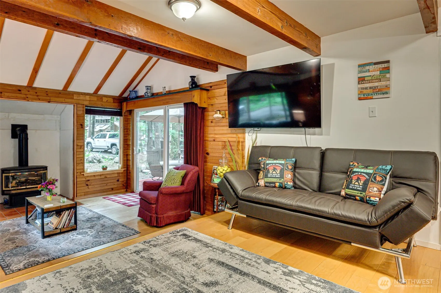 Nestled in the beautiful Northwoods Community, this tastefully remodeled 2 bedroom, 2 bath cabin offers the perfect blend of comfort and outdoor adventure. Situated on a generous lot that borders public land, you’ll enjoy privacy and a peaceful setting surrounded by towering trees. Inside, the updated kitchen features full-size appliances, sleek countertops, and ample cabinet space, while the open-concept living area flows seamlessly onto two decks, ideal for morning coffee or entertaining guests. This off-grid cabin is equipped with a propane generator, battery system, and a 500-gallon propane tank for reliable power. Outside, there is plenty of space for parking multiple vehicles and storing recreational toys, including room for a boat.