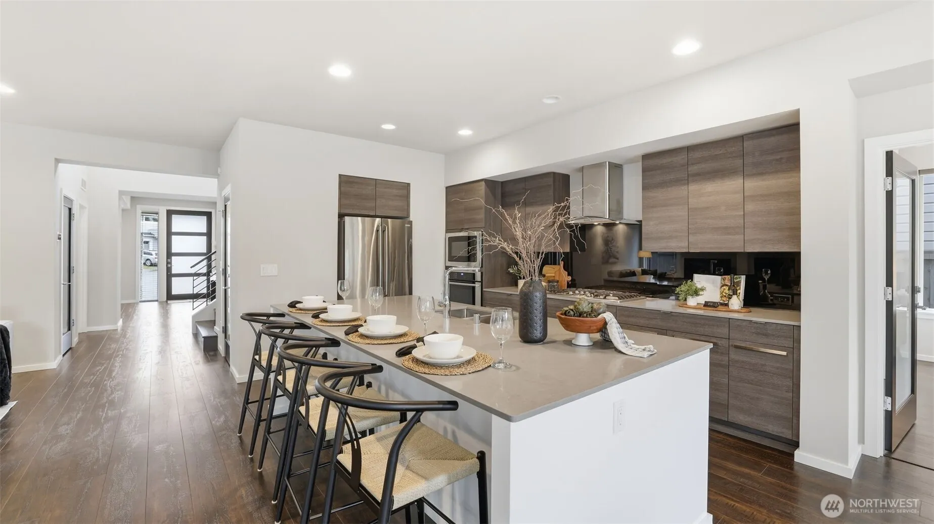 Nestled in a quiet cul-de-sac among high-end ultra-modern homes by MainVue, this meticulously maintained and thoughtfully upgraded residence offers refined living at its best. Ideally located across from a neighborhood playground and within the award-winning Tahoma School District, this home combines luxury, comfort, and an exceptional setting. The main floor is anchored by a luxurious primary suite featuring a spa-inspired five-piece bath and a custom closet package designed for both beauty and function. Designed for effortless everyday living and entertaining, the main level also includes a private office, engineered hardwood floors throughout, and an expansive open-concept kitchen and living area with a statement fireplace. The chef’s kitchen is appointed with high-end appliances and flows seamlessly to a covered outdoor living space—perfect for year-round entertaining. Outside, enjoy a fully fenced yard enhanced with retaining walls and patio pavers that eliminate rain and debris, creating a clean and usable outdoor experience in every season. Upstairs, a large bonus room provides flexible space for media or recreation, along with two additional spacious bedrooms and an updated three-quarter bathroom, offering comfort and privacy for guests or household members.