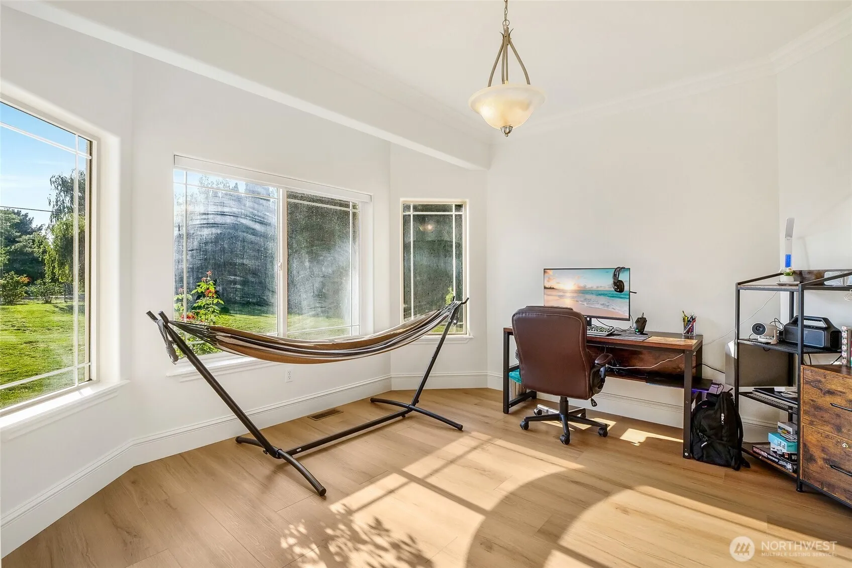 This beautifully remodeled 3-bedroom, 2-bath home with an office sits on nearly an acre in Soap Lake with no HOA and irrigation throughout the entire lot. Updated less than a year ago, the home features new luxury vinyl plank flooring along with fresh interior and exterior paint, making it truly move-in ready. The open living and dining area offers soaring 12-foot ceilings with crown molding, creating a bright and welcoming space. The kitchen is designed for both function and style with custom cabinetry, granite countertops, and a wraparound bar ideal for entertaining. All bedrooms feature 9-foot ceilings, while the spacious primary suite includes a walk-in closet, soaking tub, and walk-in shower. Outside, the partially fenced yard provides room to garden, relax, or expand, with irrigation already in place to easily maintain the entire property. There is ample space to build a shop or workshop, along with a 2-car garage for parking and storage. A rare opportunity to own a recently remodeled home on a large, irrigated lot with no HOA in Soap Lake.