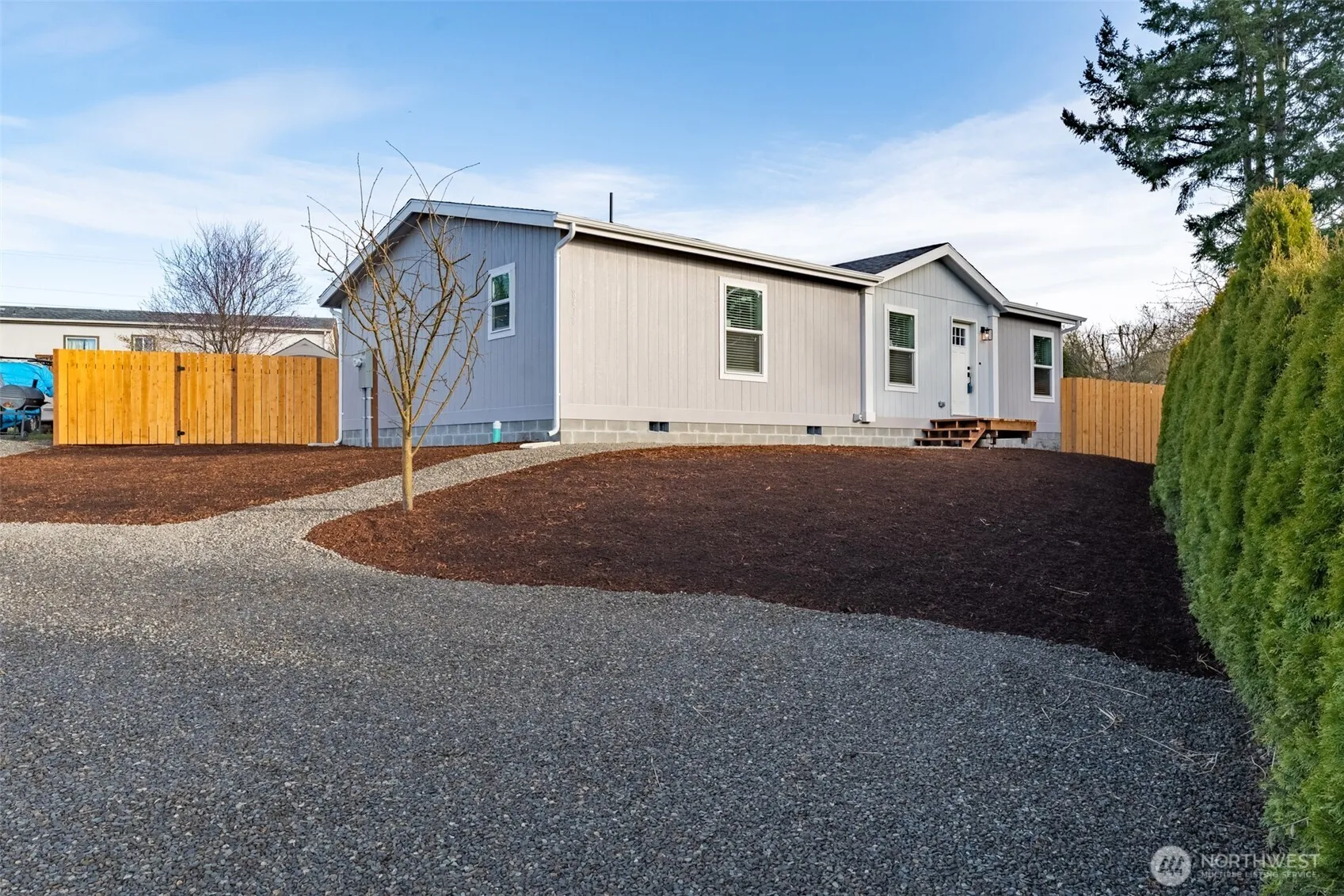 Completed in 2026. One-level manufactured home with manufacturer warranty in a convenient Birch Bay location near the water. This 1,280 sq. ft. home offers 3 bedrooms and 2 full baths, designed for easy one-level living with a bright, open-concept layout and comfortable bedroom separation. Modern finishes include, durable high quality LUX vinyl flooring. The kitchen is dressed with hardwood cabinets with 42” overheads, stainless steel appliances, and a sleek 36” stainless European-style range hood, perfect for everyday living and entertaining. Built with 2” x 6” exterior walls and ENERGY STAR® efficiency, the home is equipped with a Carrier SmartComfort® electric furnace and ecobee® smart thermostat for year-round comfort. Exterior highlights include LP® SmartSide® siding and architectural shingles for lasting curb appeal. Located close to Birch Bay beaches, dining, and recreation—ideal as a full-time residence or coastal getaway. VA/FHA loans may qualify (buyer to verify with lender). ENERGY STAR® and NEEM® certified. Potential incentives, including a PSE rebate up to $4,200. $5000 lender credit potentially available through Kellen Weng at Guild Mortgage. (See supplements)