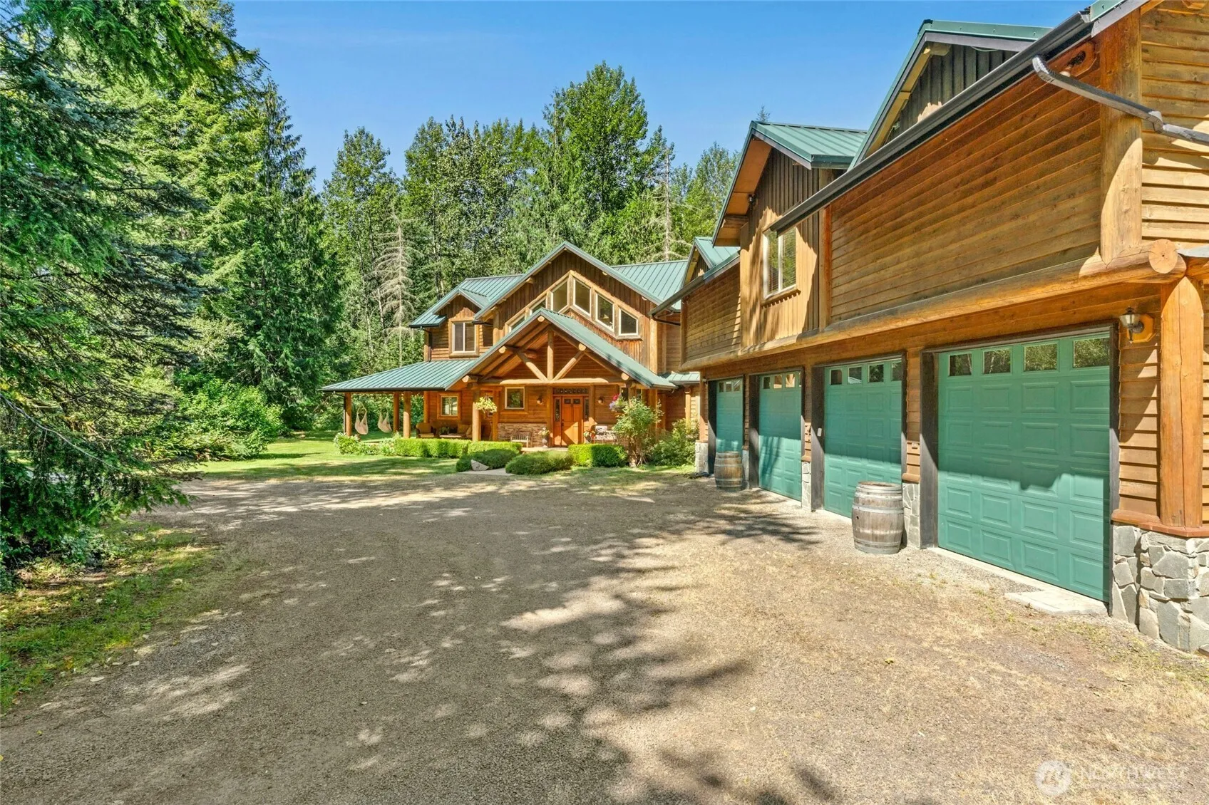Discover unparalleled privacy & Luxury, in this Montana inspired home on 20-acres with potential subdividing. The home boasts 4200 hundred square feet of meticulously designed space. Home boasts 20+ceilings with old growth log supports, two story brick fireplaces. Chef’s kitchen w/high end SS appliances. Primary suite w/ jetted tub and walk in closet w/ custom organizers. 4 Additional bedrooms w/ vaulted ceilings. Also included in the square footage, is a 5-star ADU with full kitchen and bath for a 1300 square foot of luxury, vaulted ceilings, fireplace. Oversized 4 car garage w/ workshop area. Home has high tech cabling, + wired for sound throughout, covered wrap around decks, RV parking, trails, lots to see.