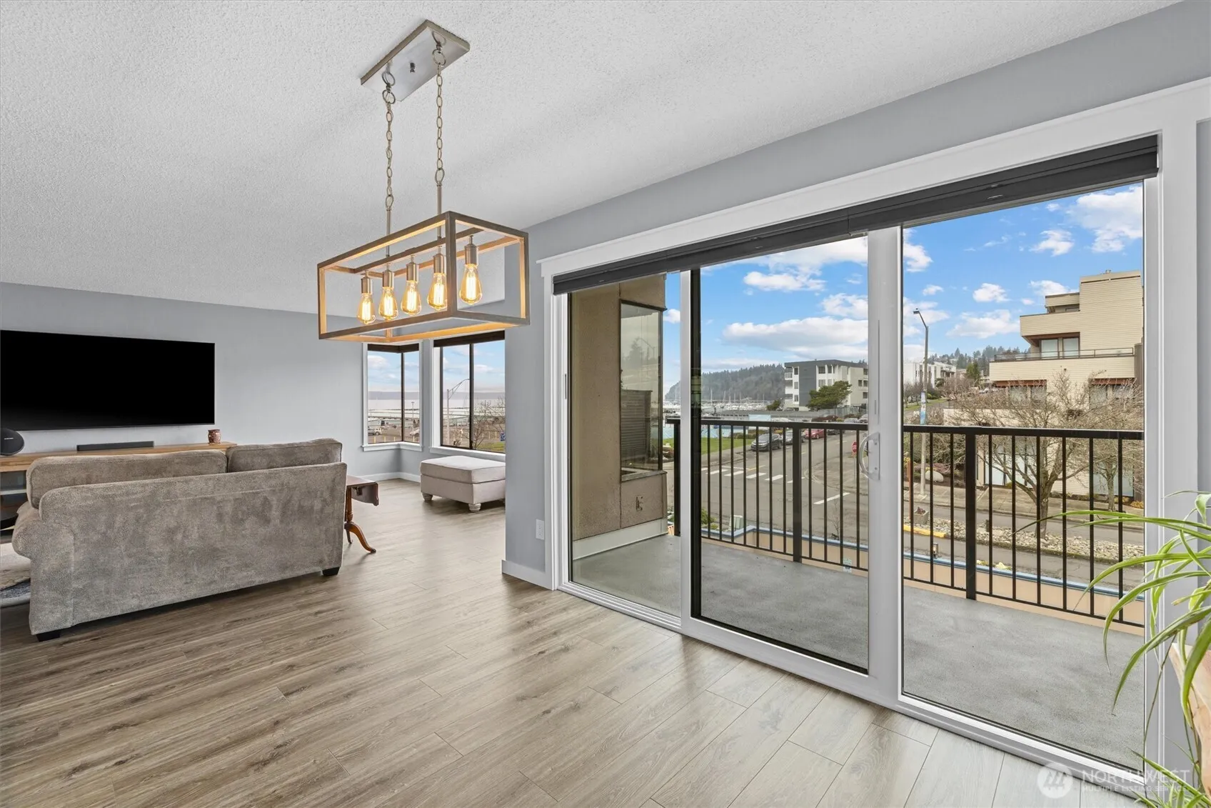 Beautiful Waterfront living Downtown Des Moines spacious condominium unit with extended view of the Marina & Downtown district. 2 Bedrooms, 2 Bath with bonus laundry-utility room. Large living space, Dining room and open kitchen space. Multiple nook areas for entertaining, dry bar and wet bar. New slider to new deck and rail system. Primary suite with newly updated bath, walk in closet and barn door. Laundry room features new washer & dryer, storage cabinets and counter space. Lovely kitchen with granite counter tops, new refrigerator and dishwasher. Additional storage closets in hallway. Designated garage parking with 9′ x 16′ storage locker. Experience true PNW lifestyle living with access to restaurants, retail, waterfront parks, tree-lined sidewalks, sunsets, sailboat races, sea-life rescue & rehabilitation. The courtyard features an outdoor pool, spa, cabana, BBQ area and immaculate mature landscaping. Exterior renovations include walkway surfacing, lighting, soffits, rebuilt stairwells, new fascias around the building, new sliding glass doors, chimney surrounds, new infills above garage doors and new parking lot lighting. Roof to be completed 2026.