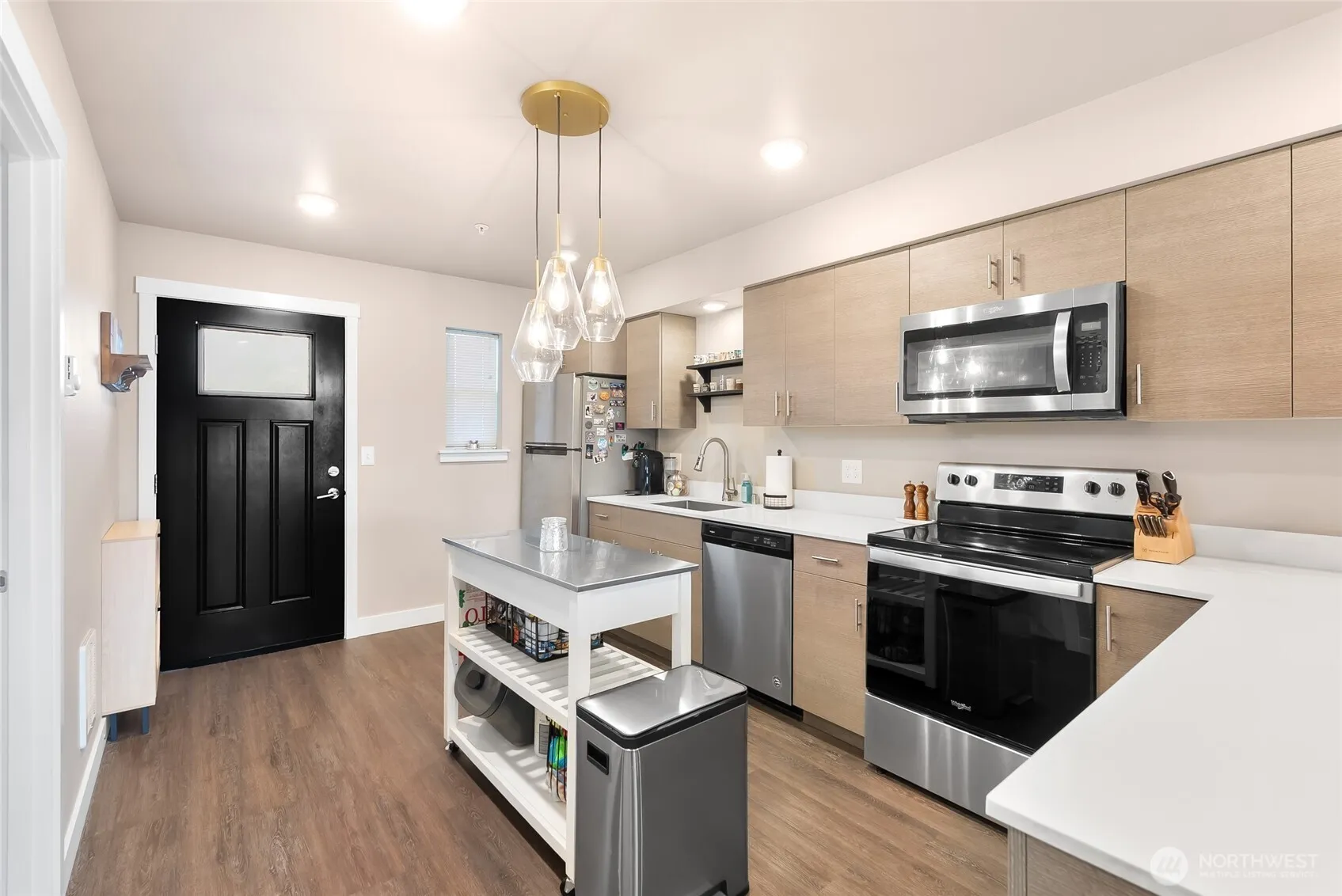 Modern design meets an unbeatable downtown location in this two-bedroom, third floor condo. Walkable to shops, dining, and daily conveniences, this home is an ideal opportunity for down-sizers, first-time buyers, or investors seeking low-maintenance living in the heart of Lynden. Thoughtfully designed with an efficient floor plan, this stylish condo is enhanced by upscale amenities and refined luxury touches throughout. The kitchen showcases high-end cabinetry and premium countertops, complemented by stainless steel appliances, and a functional island ideal for everyday living and entertaining. Additional upgrades—rarely found together at this price point—add to the home’s exceptional appeal. Enjoy the ease and convenience of a designated covered parking space with additional storage. Water, sewer, garbage, and exterior maintenance included in your HOA.