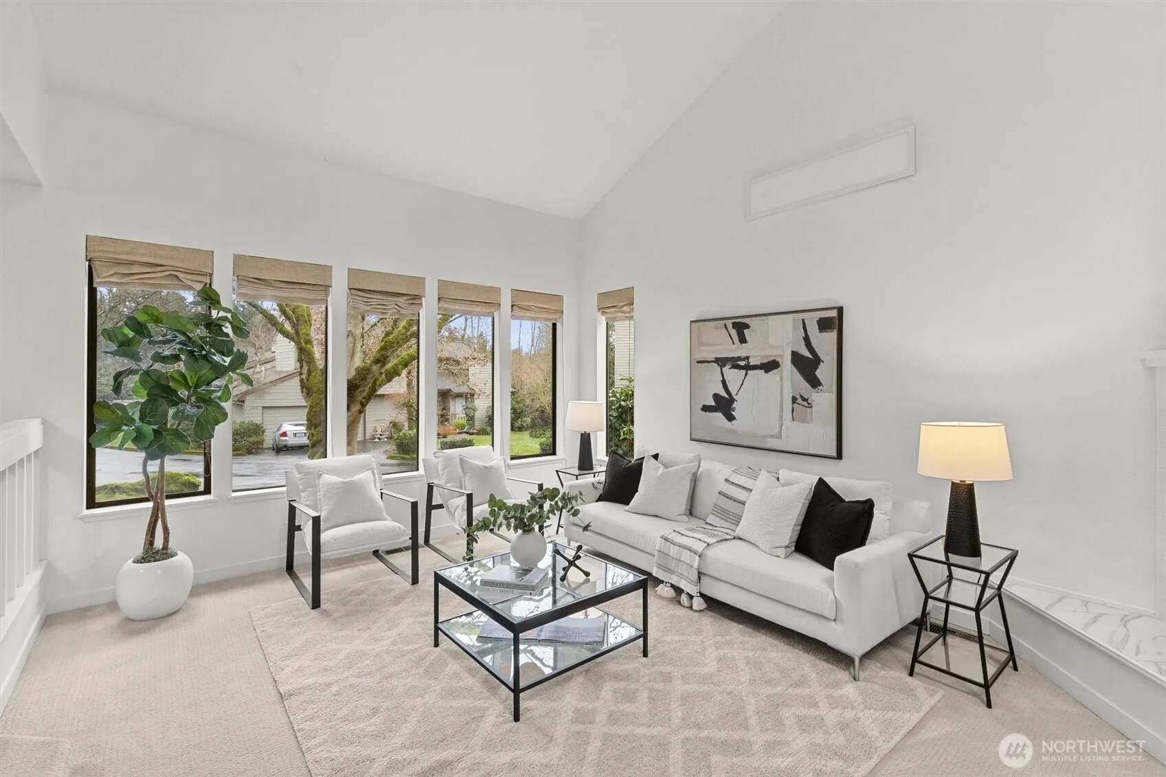 This light-filled end-unit townhome combines thoughtful updates with a location tailored for today’s connected lifestyle. Vaulted ceilings and expansive windows enhance the open main-floor plan, while a refined fireplace adds warmth and definition to the living area. The remodeled kitchen features a striking quartz island and newer cabinetry, seamlessly supporting daily living and entertaining. Upstairs, a spacious loft adds flexible living or work-from-home space, while the primary suite includes an updated bath with frameless shower, modern vanity, and custom built-in closet. Step out from the family room to a cozy deck for outdoor enjoyment. Recent improvements include newer carpet, interior paint, furnace, and air conditioning. A spacious two-car garage and well-run HOA provide added ease. Set within the Bellevue School District and approximately five minutes to downtown Bellevue, with quick access to Microsoft, major highways, transit, retail, and dining—this home offers a smart balance of livability and location efficiency. Home must be owner occupied!
