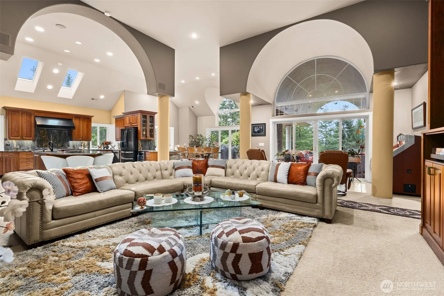 You’re not just buying a HOUSE. You’re buying a LIFESTYLE!- From the gated entry & tree lined drive to the full views of Mt. Rainier throughout, this Spectacular 4-bed, 4-bath estate with 3,893 sq.ft. on 4.18 acres captivates! This bright home, filled with windows, 14′ ceilings, many vaulted with barrel arches inside and out, custom Cherry wood built-ins has too many perks to mention, and a must see! This home blends timeless craftsmanship with thoughtful 2023 updates; including new quartzite in Kitchen, fresh interior and exterior paint, new appliances, a striking fireplace insert with rock surround & quartzite Hearth. The newly updated chef’s kitchen features custom Cherry cabinets, a 6-burner gas stove, bar seating, and walk-in pantry with an extra fridge. The dreamy main ensuite, offers a fireplace and his-and-hers closets, plus a second ensuite over the garage! Enjoy expansive outdoor living with patios, a hot tub, Orchard with fruit trees, berries, 12 zone sprinkler system and extensive flowering landscape that evolves beautifully with the seasons! The versatile 2,000 sq ft shop includes a ½ bath, car parking, RV parking with hookups, expanding your options. DON’T WAIT! Carpet allowance included. *** Please Note! 2 additional parcels available totaling 23.9 acres. *** TOTALING 28.08 ACRES!
