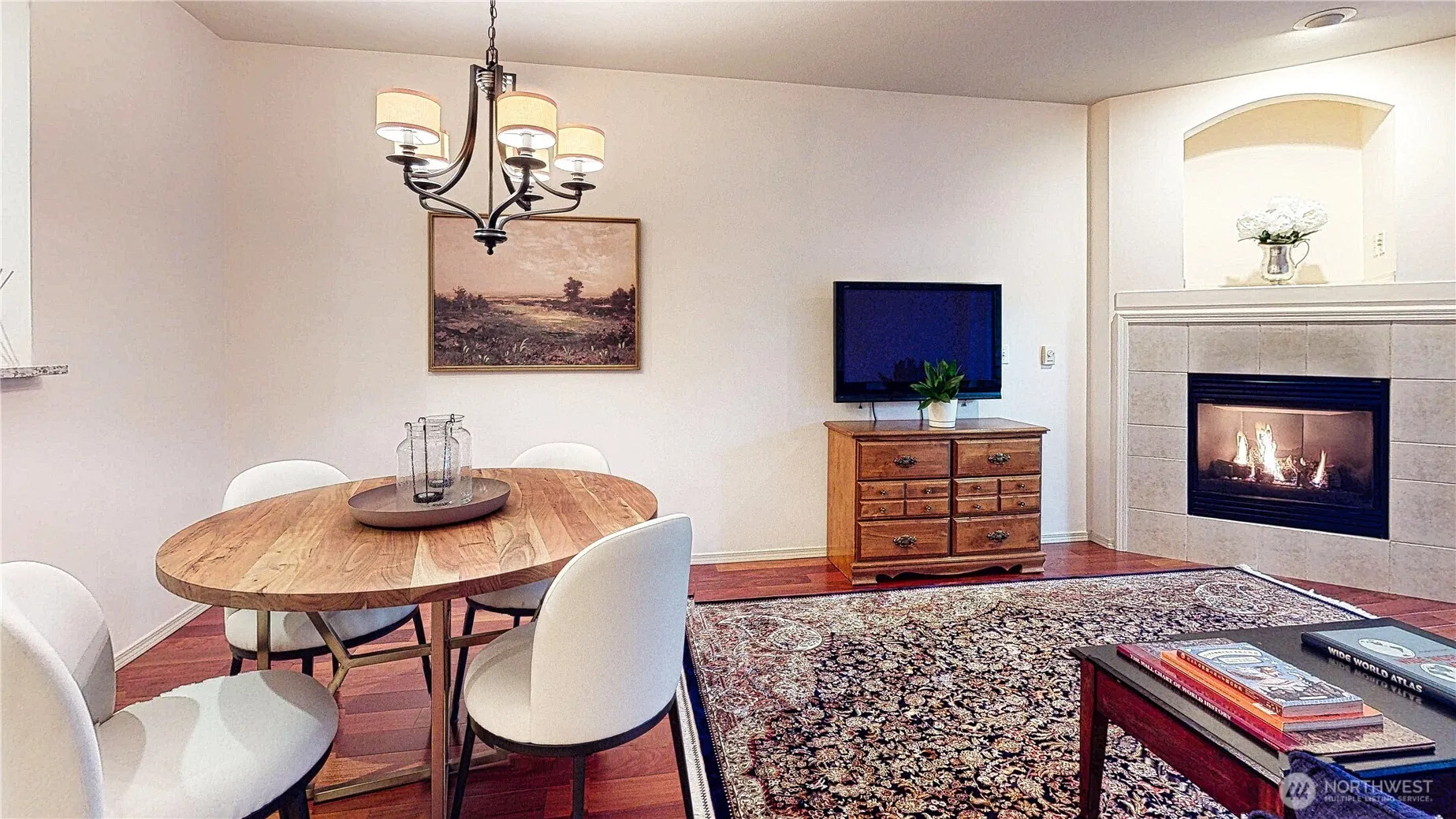 Set against a protected greenbelt, this well-maintained and thoughtfully updated ground-floor condo offers privacy, comfort, and convenience in one of the area’s most accessible locations. With peaceful wetlands directly behind the unit, the home enjoys a quiet, natural backdrop that can be appreciated from both the interior living spaces and the covered patio. Inside, hardwood floors define the main living areas, complemented by carpet in the bedrooms. The living room features a cozy, temperature-controlled gas fireplace—ideal for creating warmth and ambiance while maintaining energy efficiency. Large windows bring in natural light while preserving privacy. The kitchen is both functional and stylish, featuring stainless steel appliances, quartz countertops, and ample cabinetry. It opens easily to the dining and living areas, creating a layout well-suited for everyday living as well as entertaining. The primary suite was updated in 2024 and offers a comfortable, refreshed retreat. The bedroom includes a walk-in closet plus a second closet, providing excellent storage. The attached primary bathroom features an elevated dual-sink quartzite vanity with generous counter space and a walk-in shower with excellent water pressure. Ground-floor access and wheelchair-friendly features add to the home’s practicality and long-term livability. The covered patio includes additional storage and offers a private outdoor space.