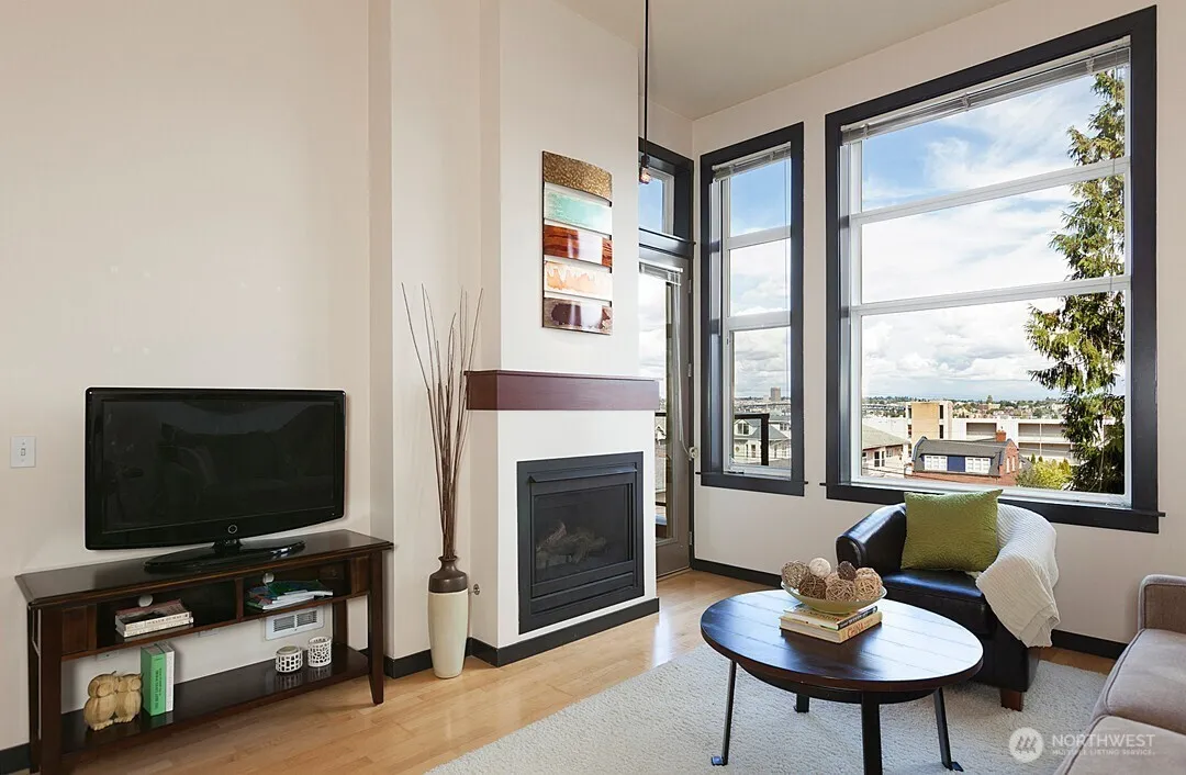 Available Now. Stunning One Bedroom Condo overlooking Lake Union. Includes tremendous views of the Cascades, downtown Seattle and eastern sunrises. Wonderful open design for living area, lovely 11-foot ceilings, along with gas fireplace. Large kitchen with stainless steel appliances, quartz countertops, maple cabinetry and breakfast bar. Hardwood floors in the kitchen and living areas. Gas fireplace. One bedroom with carpeting and walk-in closet. Full bath. Large balcony. Community rooftop balcony for summertime relaxation. Short distance to downtown Seattle. 1 parking space in garage. 1 storage closet. Sorry, no pets.