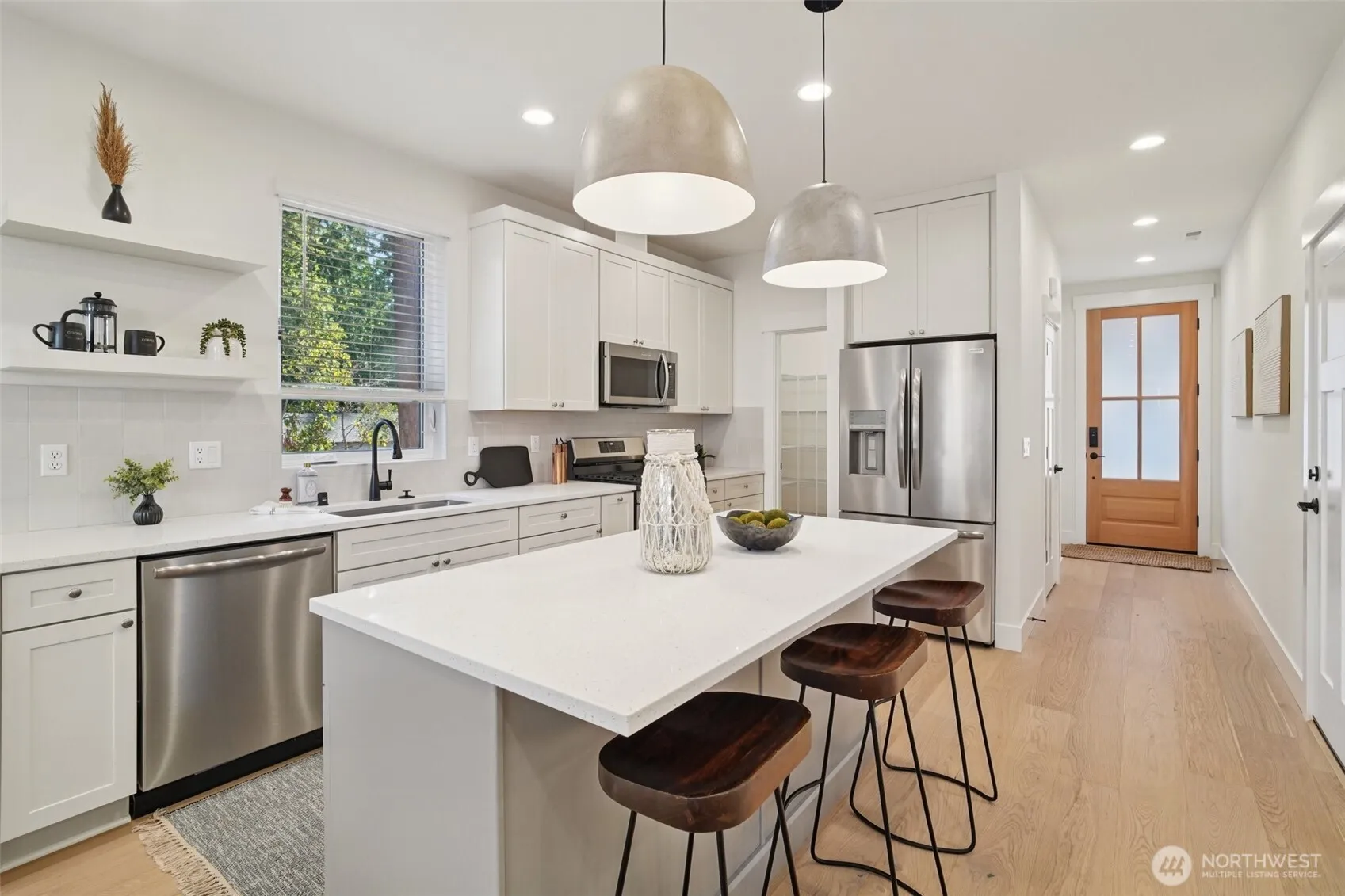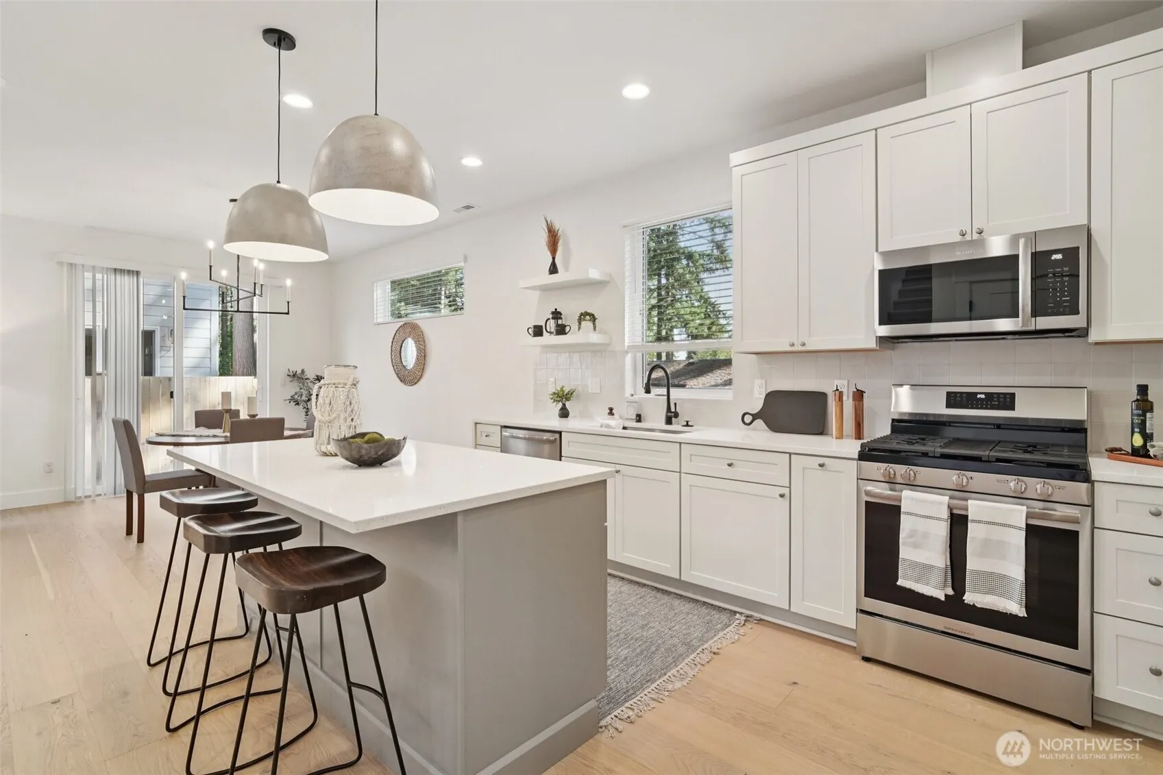 4.99% 30-yr CONV w/ builder’s $50K rate buydown through preferred lender. New construction in Edmonds’ sought-after Esperance this 4-bed home showcases an open-concept design w/ modern style. Sunlit main level is anchored by a showcase gas fireplace w/ floor-to-ceiling stone surround. Chef’s kitchen features quartz island w/ seating, open-shelf accents, SS appliances & gas range, white shaker cabs & huge walk-in pantry. Dining opens to a fully fenced yard for seamless indoor-outdoor entertaining. Ideal layout w/ 1-bed + den on main. Spacious Primary Suite w/ WIC & 5-piece bath. Family room/loft. Wide-plank LVP, EV-ready 2-car garage & builder warranty included. Own long private driveway. Moments to schools, Bowl, shops, parks, Hwy 99 & I-5.