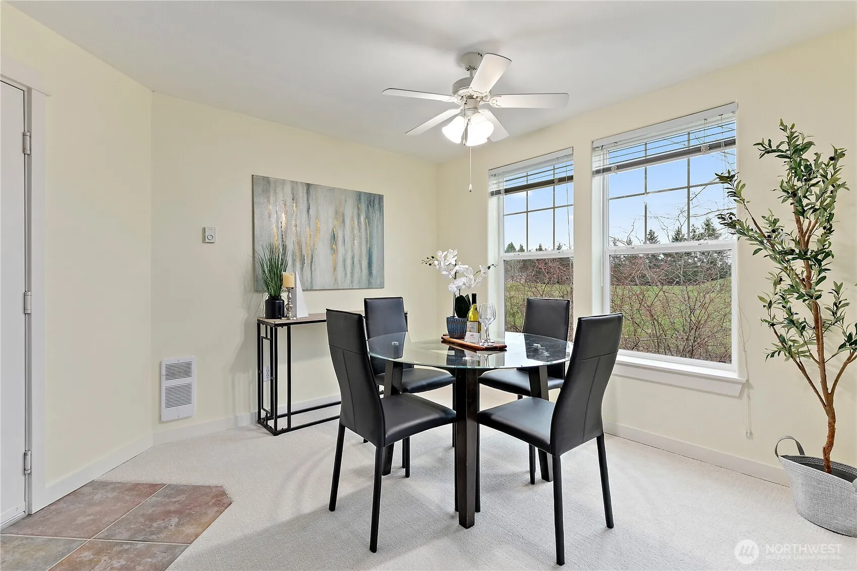 Bright and inviting, this top-floor end unit in Compass Pointe offers comfort, space, and convenience in a well-designed layout. Featuring three bedrooms, 2.5 baths, and a one-car garage with an additional driveway parking spot, the home welcomes you with an open great room that seamlessly connects the living, dining, and kitchen areas. New carpet and a cozy gas fireplace enhance the warm, airy feel, while large windows fill the space with natural light. The generous balcony provides additional living space for enjoying fresh air and outdoor views year-round. The primary suite includes a walk-in closet and private bath, while two additional bedrooms provide flexibility for work, hobbies, or guests. Dual-zone heating and air conditioning ensure year-round comfort. Compass Pointe offers a community with no rental cap. Ideally located near Microsoft, Starlink, and SpaceX, with easy access to shopping, dining, parks, golf, and nearby trails, this home combines low-maintenance living with a vibrant, convenient location. Pre-inspected for added peace of mind.