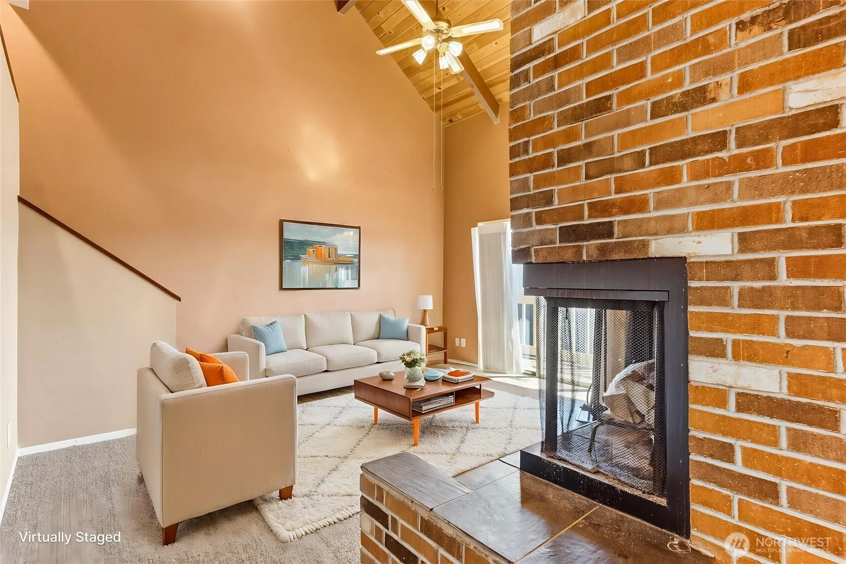 “Welcome to this beautifully updated 2-bedroom, 3-bathroom riverfront condominium at 1310 River Road #9 in Longview, WA. Offering 1,101 sq ft of comfortable living with vaulted ceilings, crown molding, and abundant natural light, this home provides the perfect blend of modern updates and timeless charm. Step inside to discover brand new carpet throughout and a new HVAC system for year-round comfort and efficiency. The bright, open living space features a dramatic floor-to-ceiling brick fireplace as its centerpiece. Upstairs, the loft area—complete with skylights and custom built-ins—offers a versatile space that includes a flexible bonus area hidden behind the bookshelf, perfect for a home office, hobby room, reading nook, or extra storage. The kitchen shines with beautiful white cabinets, granite countertops, and a thoughtful layout that’s perfect for everyday living. The primary bathroom offers a luxurious tiled step-in shower, and the split-level entry creates a welcoming flow. All appliances, including the new washer and dryer, are included for move-in convenience. Outside, enjoy the peaceful riverfront lifestyle with dedicated walking paths right at your doorstep and access to a private dock for owners. A large two-car garage provides excellent parking and storage. This well-maintained condo is ideally located for those who love nature, outdoor activities, and the tranquility of riverside living.