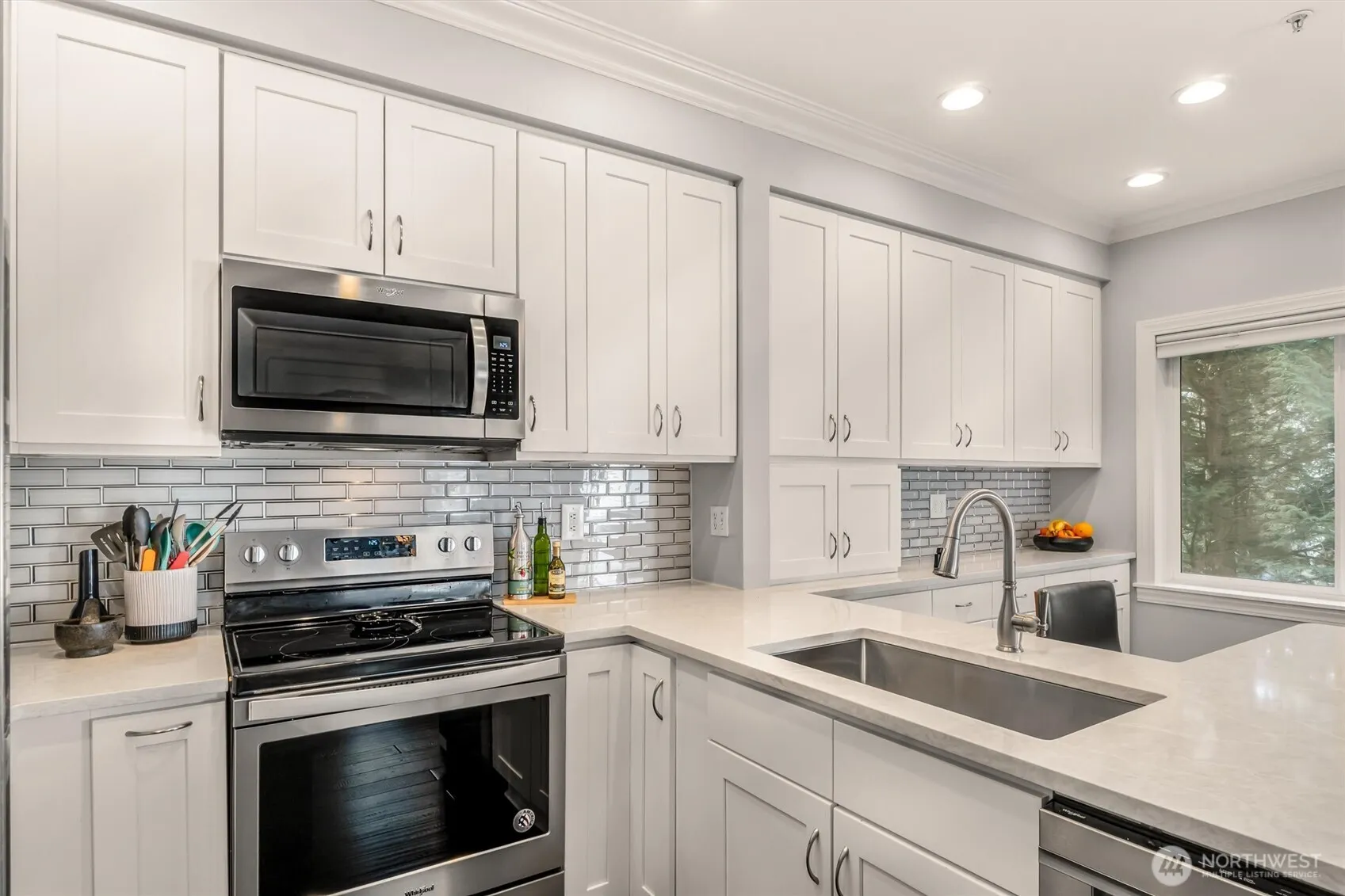 New Improved Price! Bright, beautifully updated **corner-unit townhouse** in the heart of **Mill Creek**! The main level features a remodeled kitchen with quartz countertops, stainless-steel appliances, and impressive custom storage. Generous living, dining, and family spaces flow effortlessly for everyday living or entertaining, plus a convenient half bath. Step onto your private balcony—perfect for BBQs or relaxing while overlooking peaceful green space. Upstairs, the spacious primary suite offers a walk-in closet and updated ensuite bath. Two additional bedrooms share a full guest bath and laundry for convenience. Enjoy year-round comfort with newly added A/C and a high-efficiency heat pump. Downstairs, the two-car garage includes an attached Bonus Room with a built-in Murphy bed—ideal for guests, a home office, media room, playroom, or hobby space. Located near highly desirable schools and **walkable to Henry M. Jackson High School and Heatherwood Middle School**. Just minutes to **Mill Creek Town Center**, parks, scenic trails, restaurants, **Town & Country Market**, and rapid transit options for easy commuting. Sits back off Dumas Rd in a peaceful setting. No worrying about siding, roofs, water/sewer, Insurance. exterior, Roofs replaced in past 2 yrs. No surprise exterior costs. HOA covers it. Low-maintenance living in a prime location —May qualify for WA state down payment program? This one checks all the boxes.