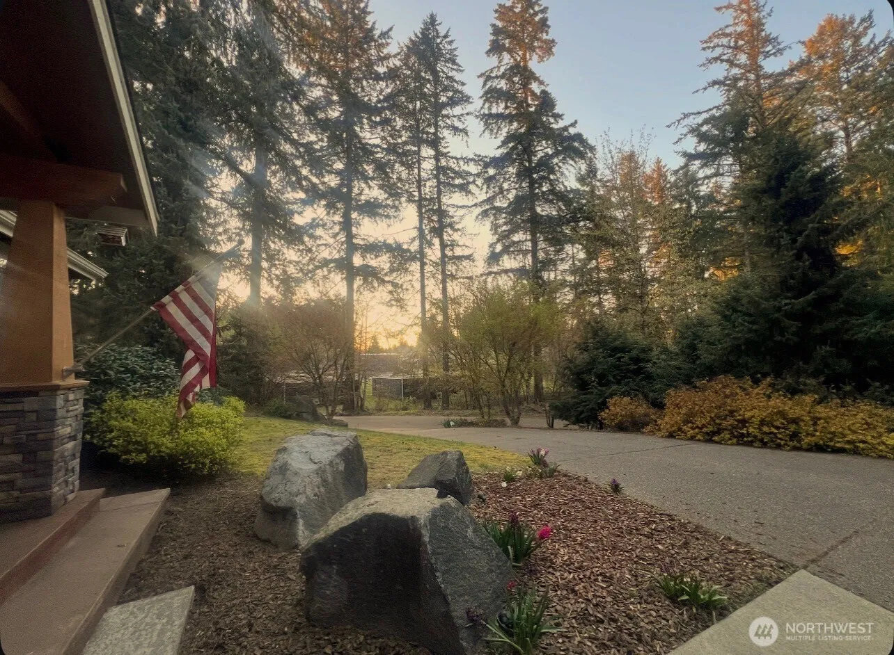 Privately sited on an elevated ¾-acre lot, this Craftsman rambler offers the perfect balance of serenity and convenience. Surrounded by mature trees, the home feels tucked away, yet is just minutes to shopping, transit, and I-5. A desirable split-bedroom floor plan provides privacy, with the primary suite and office/den thoughtfully separated from the additional bedrooms. Designed for effortless living and entertaining, the open kitchen and dining area flow seamlessly to expansive covered decks—over 800 sq ft total—featuring a built-in propane BBQ connected to an underground tank and a cozy wood fire pit. Warm cherry hardwoods and rich slate flooring enhance the interior, complemented by built-in storage and high-end appliances. Recent updates include fresh interior paint and a recirculating pump for the hot water system, adding comfort and efficiency. Enjoy a large, usable yard with direct access to nearby trails leading to the Thurston County Fairgrounds and Long Lake Park. A 3-car garage, private wooded setting, and close proximity to everyday amenities make this home a rare find. Sellers are prepared for their next move and welcome your interest.