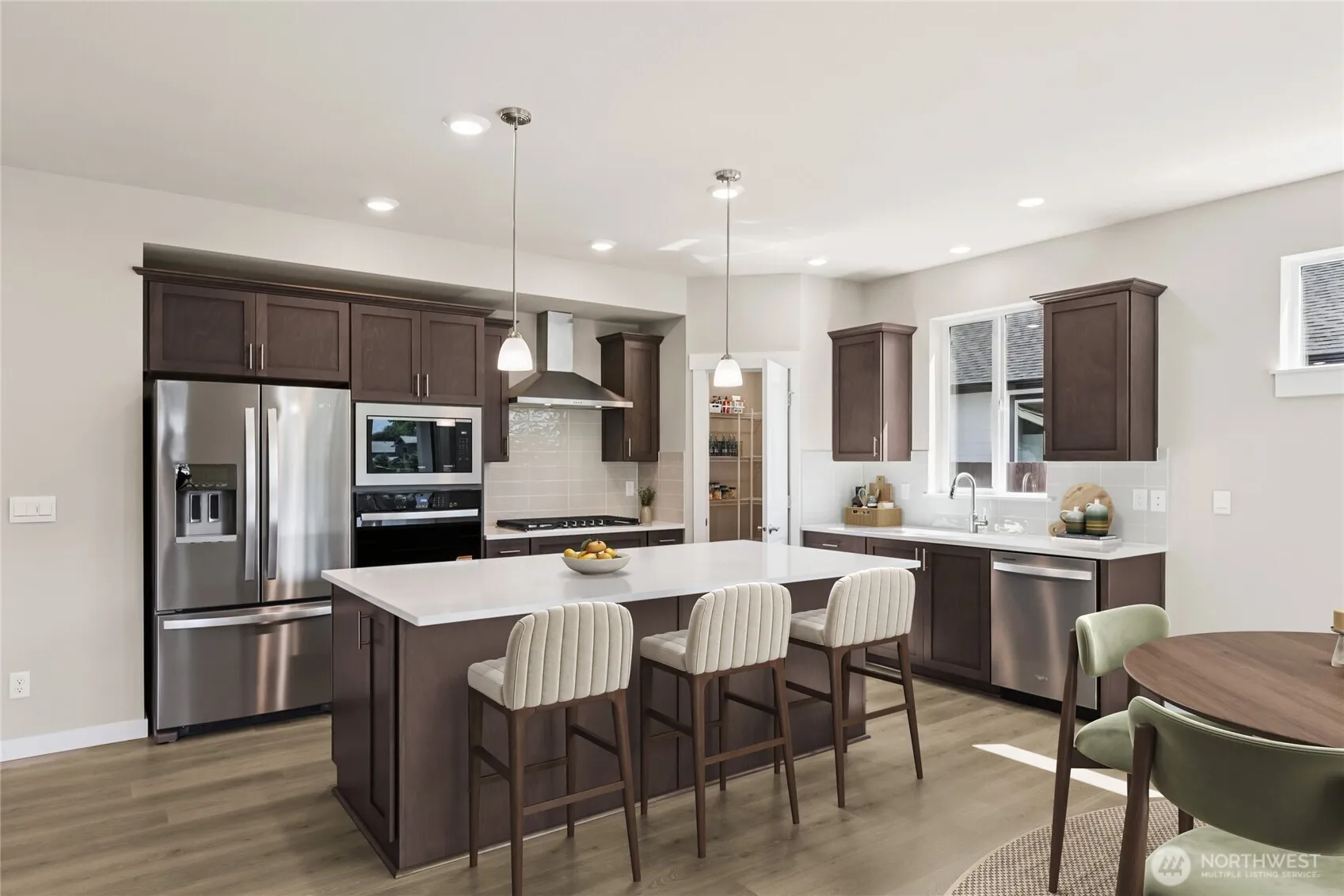 This north facing Bridgewater blends timeless craftsmanship with modern comfort. This stunning north facing new construction in North Bend showcases breathtaking mountain views and a thoughtfully designed open concept main floor with a spacious great room, elegant electric fireplace, and chef inspired kitchen with oversized island and walk in pantry. A main level bedroom or office with a nearby three-quarter bath offers ideal flexibility. The luxurious primary suite features a spa like five-piece bath and generous walk-in closet. Upstairs includes three additional bedrooms and a sun filled bonus room. Enjoy an easy commute to Bellevue and Kirkland with access to highly rated schools, all in an exceptional Pacific Northwest setting. Up to seventy-five-thousand-dollar buyer bonus available with preferred lender. Broker registration required at first visit, including open houses.