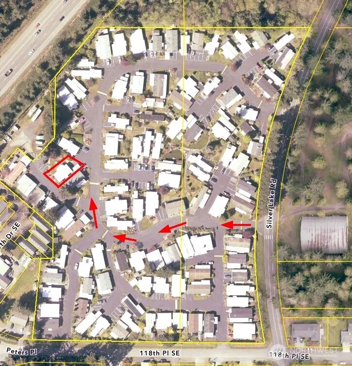 Affordable & well cared for 2 Bdrm/2 Ba (1,056sf) Mfg home in a 55+ adult commty 0.25mi to desirable Silver Lake Public Park. Large & beautiful, easy care yard w/ a small pond & mature landscaping w/ large covered deck. Home has newer flooring thru-out, updated wall finish/remodeled kitchen, excellent natural lighting living room. NEW ROOF in 2024, NEW WATER HEATER 2025, NEWER VINYL WINDOWS. Guest parking off cul-de-sac in front of home. Carport + 1 uncovered parking behind home. Park features clubhouse with gaming options. Move in ready. Seller moving abroad. Personal items negotiable. Two different roads to access this home in park. Space rent includes water/sewer/garbage. Quality built home w/copper wiring.