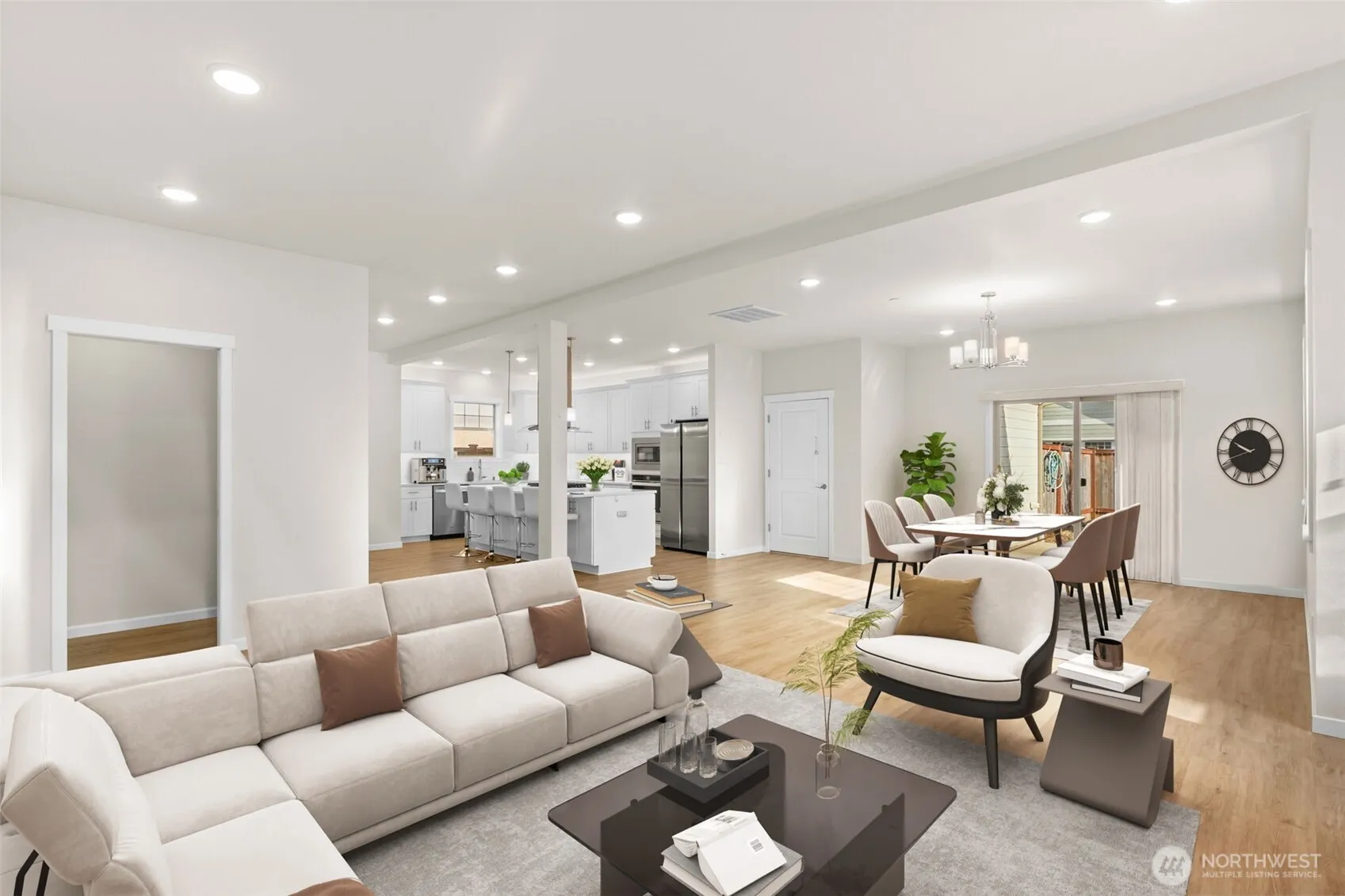 Fabulous one-of-a-kind 4 bedroom, 3.5 bath home with 3,324 SF, built in 2021, and shows like new. Features two spacious luxury primary suites, including a main-floor primary with spa-inspired bath, large walk-in shower, and soaking tub—ideal for multi-generational living. Open floor plan with high ceilings and abundant natural light. Gourmet kitchen with quartz countertops throughout, stainless steel appliances, large island, ample cabinetry, and oversized pantry. A/C with heat pump, French doors, interior sprinkler system, and covered front and rear patios for easy indoor-outdoor living. Oversized 2-car garage with EV charger. Community parks and green spaces with easy access to Chehalis Western Trail, shopping, hospital, and I-5. A rare opportunity—this home truly has it all.