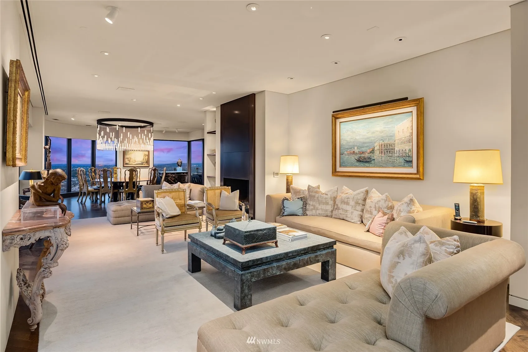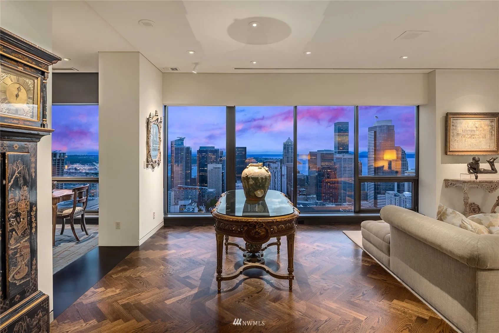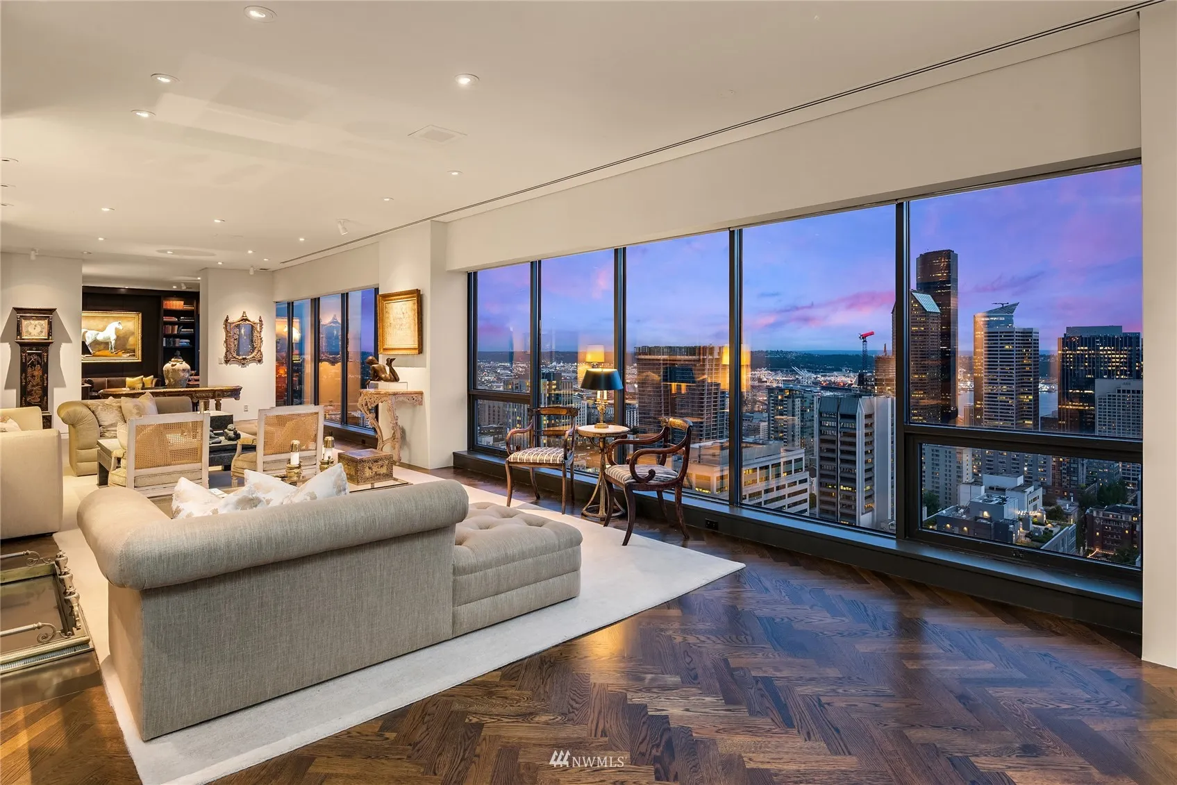 A once in a generation opportunity to own the entire Penthouse floor in one of Seattle’s most luxurious condominium buildings offering an unparalleled level of service & amenities including an indoor pool and outdoor tennis court. The full-floor residence soars above the entire city with 360 degree unobstructed views of Puget Sound, Lake Washington, the Olympics, Bellevue, & the Cascades. This Penthouse encompasses nearly 7000 sf & includes a fully-contained guest suite with separate kitchen & bath, paneled walnut library, bronze wet bar, private exercise center plus deeded six car side-by-side parking. The residence is accessed via its own private elevator & lobby. Award-winning three year renovation. Seattle’s highest residential peak!