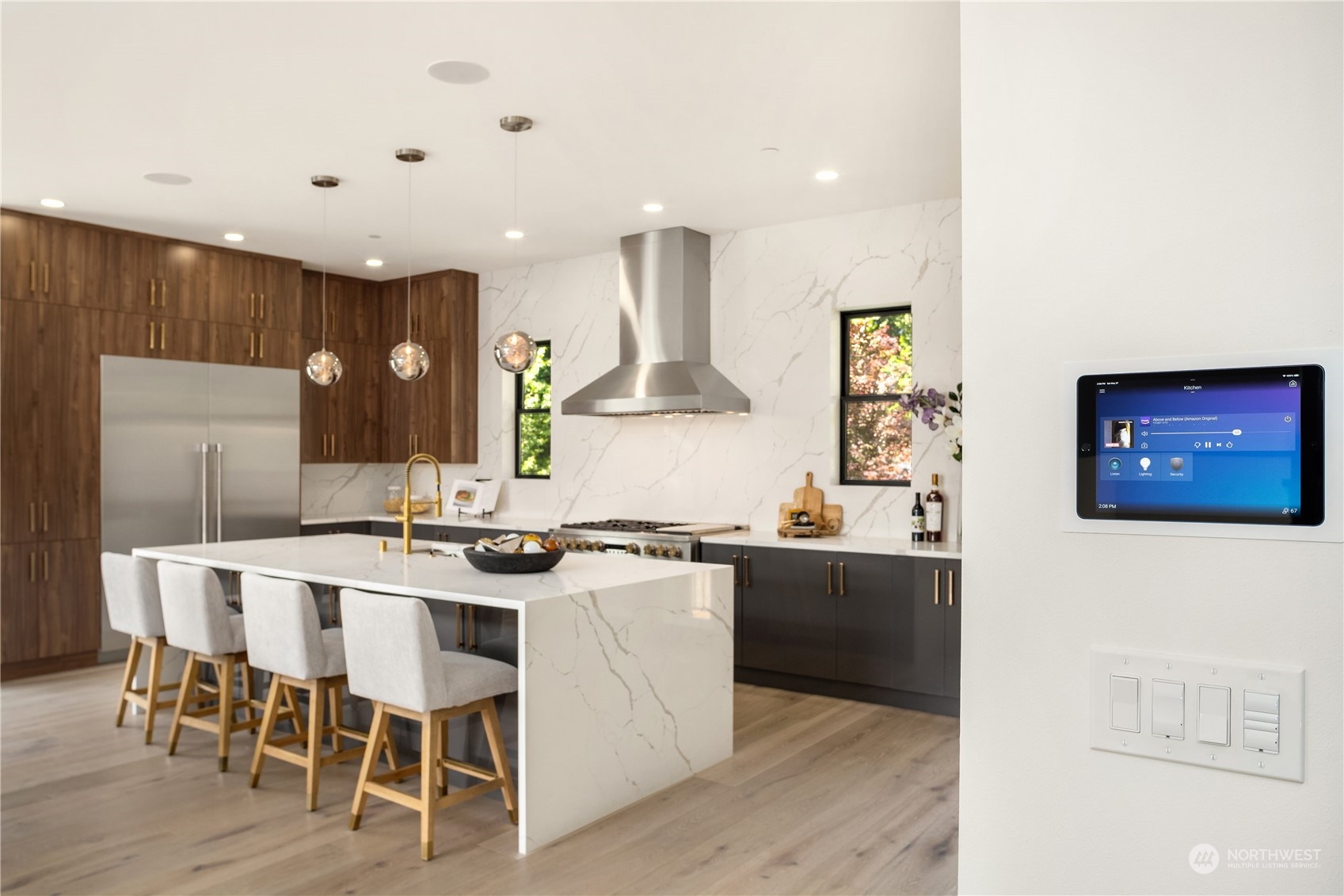 Ameritive Custom Home in the highly sought after Wilburton neighborhood of Bellevue. Quiet setting on a cul-de-sac, large, sun drenched corner lot makes this an unbeatable location. Private suite Bedrms/heated floors. The soaring ceilings and walls of windows showcase the great natural light and panoramic views. The folding glass walls opens to a large covered outdoor living/heaters. Chef’s kitchen boasts high-end appliances and a neighboring prep kitchen. The luxurious primary suite with oversized closets/skylight. Enjoy breathtaking views of Glendale CC from upper large private deck. LL features a den, bonus/media room w/kitchenette/second washer/dryer. Smart home system/audio, solar panels,3 Car garage w/ EV charging. Award winning BSD.