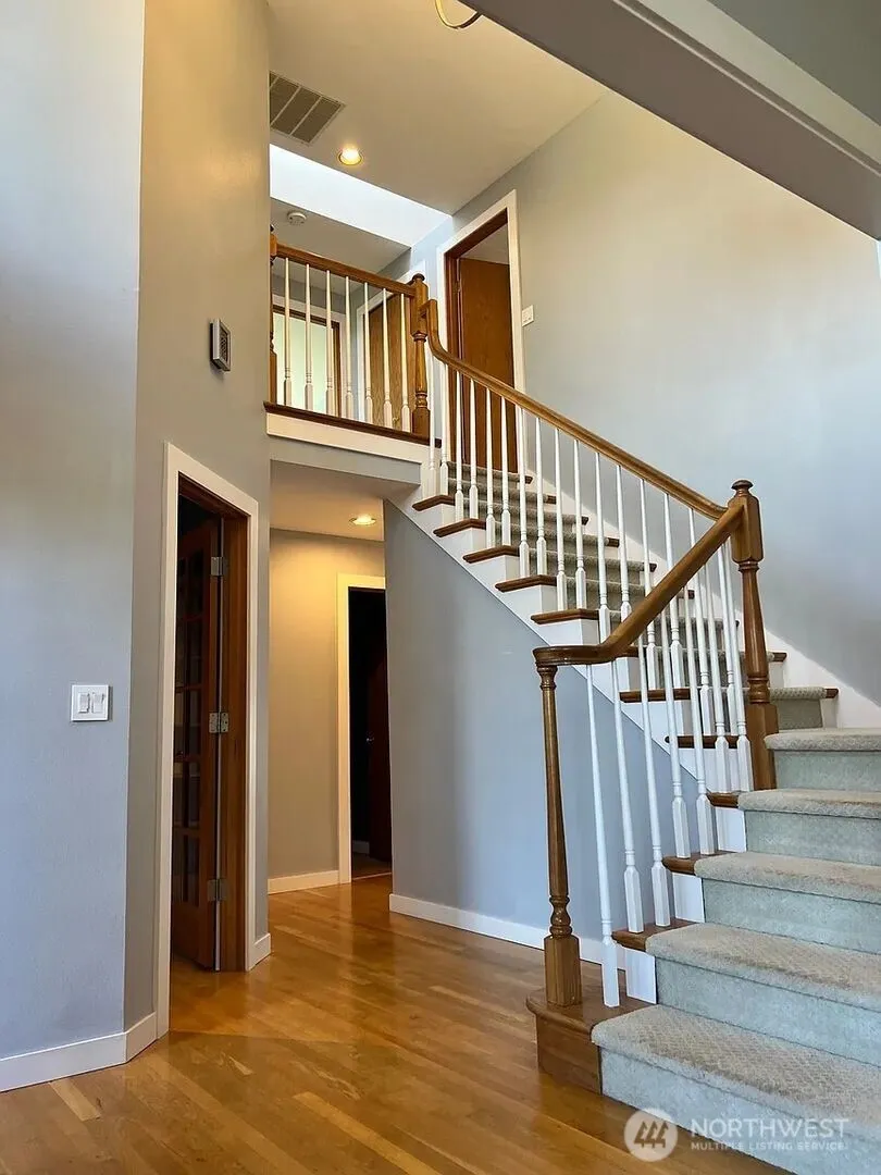 This Home has it ALL… and is only 3 Minutes from the back gate of JBLM!! Gorgeous custom home with a grand 2 story entry. Private, spacious fully fenced backyard with Japanese & veggie garden backs up to JBLM owned wooded area. Skylights brighten the interior. Hardwood floors. Formal Living with a gas fireplace, Formal Dining, Den w/built in shelving, Family Room has a second gas fireplace and French doors that lead to a large wrap around deck. Updated kitchen with granite countertops, an island, eat-in space and open to family room. Large Primary Suite. Home office with built in wood bookshelves off the downstairs foyer.