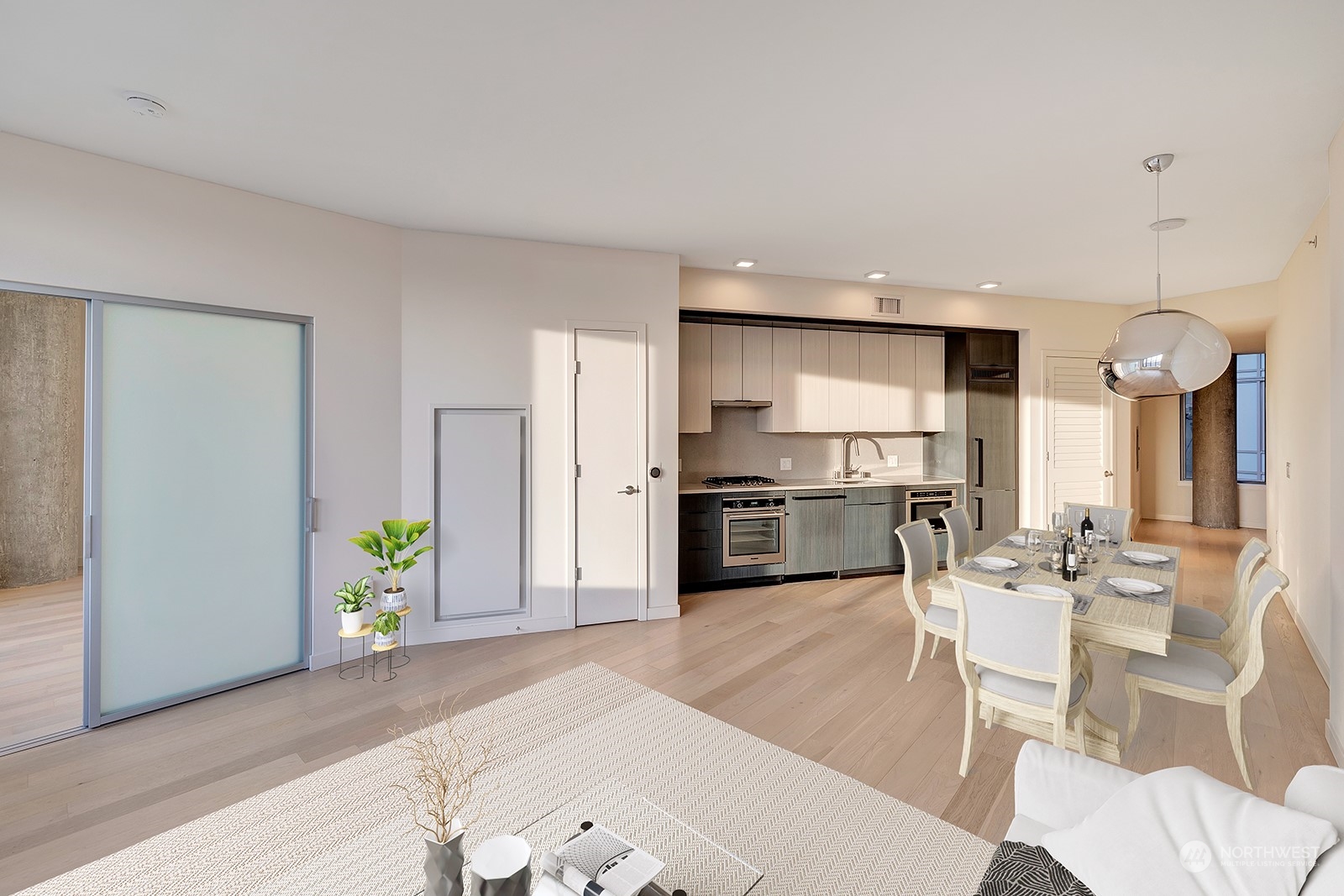 LOW PRICE! Sun drenched urban sanctuary w/west facing views of Elliott Bay, Olympic Mountains & Port of Seattle. Enjoy this walker (93 score), biker (92 score), & transit (100 score) paradise w/the pedestrian promenade, Railroad Way, at your doorstep directly connecting you to Seattle’s waterfront park, Pioneer Square galleries/nightlife, Pike Place Market, cafes, parks, ferries, light rail & north stadium district sports events. Historic brick facade w/modern design: smart thermostat, wide plank oak flrs, gas range, roller shades, A/C, full-sized W/D, built-in Bosch SS appl’cs & slab quartz countertops. Amenities: View rooftop lounge/deck, gourmet kitchen, wine lockers, fitness center & pet area. Secure lobby w/24-hour concierge services.