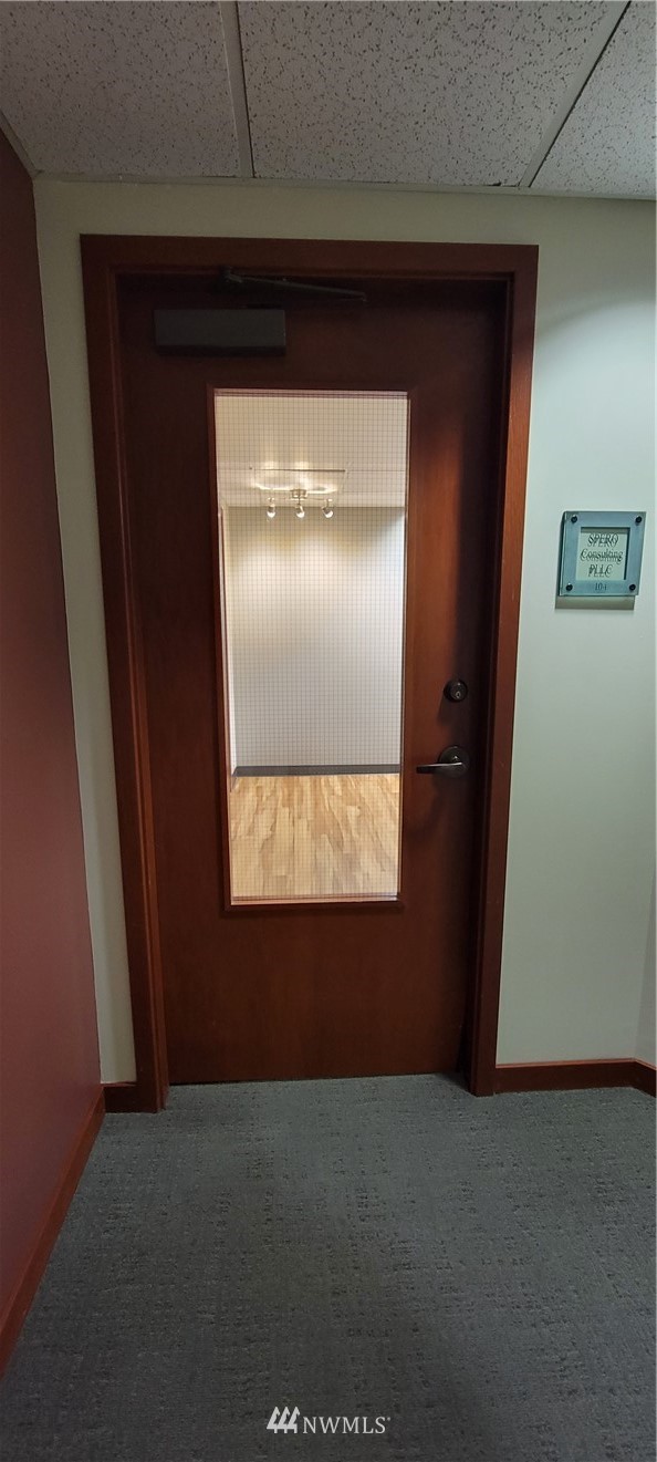 Commercial Office Space Available- Glass entry door to suite located down the hall from the lobby, opening into reception area followed by 3 private offices (2 West facing window offices) open space area, possible breakroom area and kitchenette area, cabinets for storage. Unit includes 3 private parking spots and off-street parking and elevator assess. Unit is fully carpeted in offices and laminate flooring in common areas, recessed lighting, elevator access, natural lighting, drop ceiling, central air and heating including after hours HVAC. Rate includes property expenses, utilities, and building services.