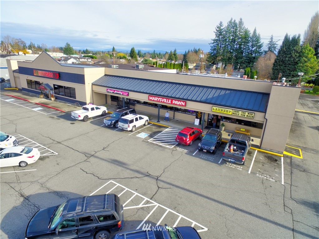 This family owned building is on the market, located in central Marysville, and has long term tenants. Current Tenants include a gym, pawn and jewelry shop, laundromat, and coffee stand. This building has sprinkler system, paved parking lot with over 105 parking spaces, and is fully occupied. New Roof in 2022. This location is close to I-5 for commuting and for ease of access for tenant customers. The building is well maintained. This is your opportunity to own prime real estate in Downtown Commercial Zoning in fast growing Marysville with a CAP rate of 8.6%.
