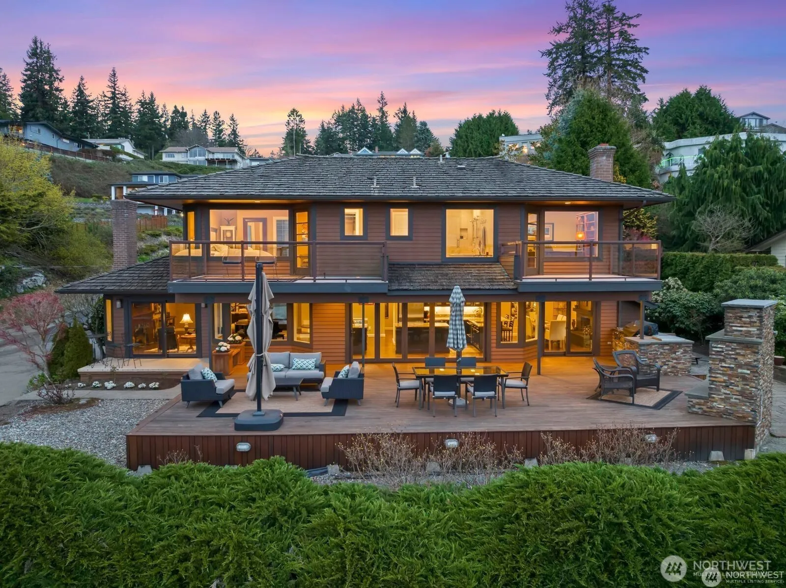 Expansive & unobstructed Views of the Puget Sound, Kingston Ferry, Possession Point set against Olympic mountains. Discover the beauty of Edmonds from this stunning home. Enjoy the peaceful ambiance of this amazing property, complete with views from every room. Relax in the primary bathroom featuring a freestanding bathtub also including 3 shower heads in the floor to ceiling Italian marble shower room. Enjoy entertaining in you indoor outdoor space with built in bbq station and outdoor fireplace. The Nana style accordion glass wall connects you to the gourmet kitchen. Parking is a breeze in your triple car heated garage. Stay cool with dual zoned AC or warm with 3 Fireplaces. We look forward to welcoming you to our retreat in Edmonds.