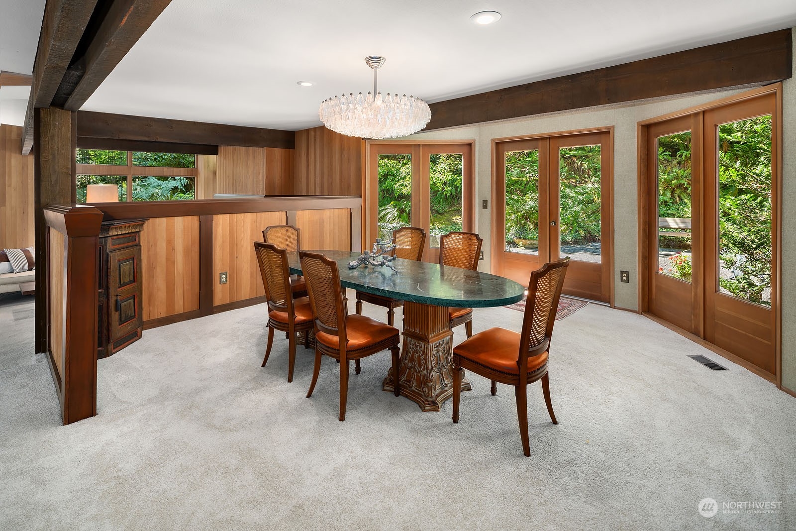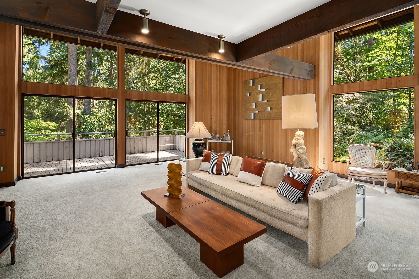 First time on the market, this timeless treasure offers remarkable NW Contemporary architecture featuring soaring ceilings, exposed beams, rich wood accents & several sliding glass doors that open to the peaceful, resort-style setting. Designed to entertain, the living & dining rooms are perfect for hosting large gatherings! Vaulted primary suite with cozy loft. The garden level adds versatility with 2 huge rooms, bath, large storage room & separate entrance. Private outdoor living surrounded by lush greenery, sundrenched patios, multiple decks & hot tub. Parkside is an inviting community adjacent to Bridle Trails State Park with 482 forested acres & 28 miles of trails. Prime location convenient to DT Bellevue, Kirkland, Redmond & freeways.