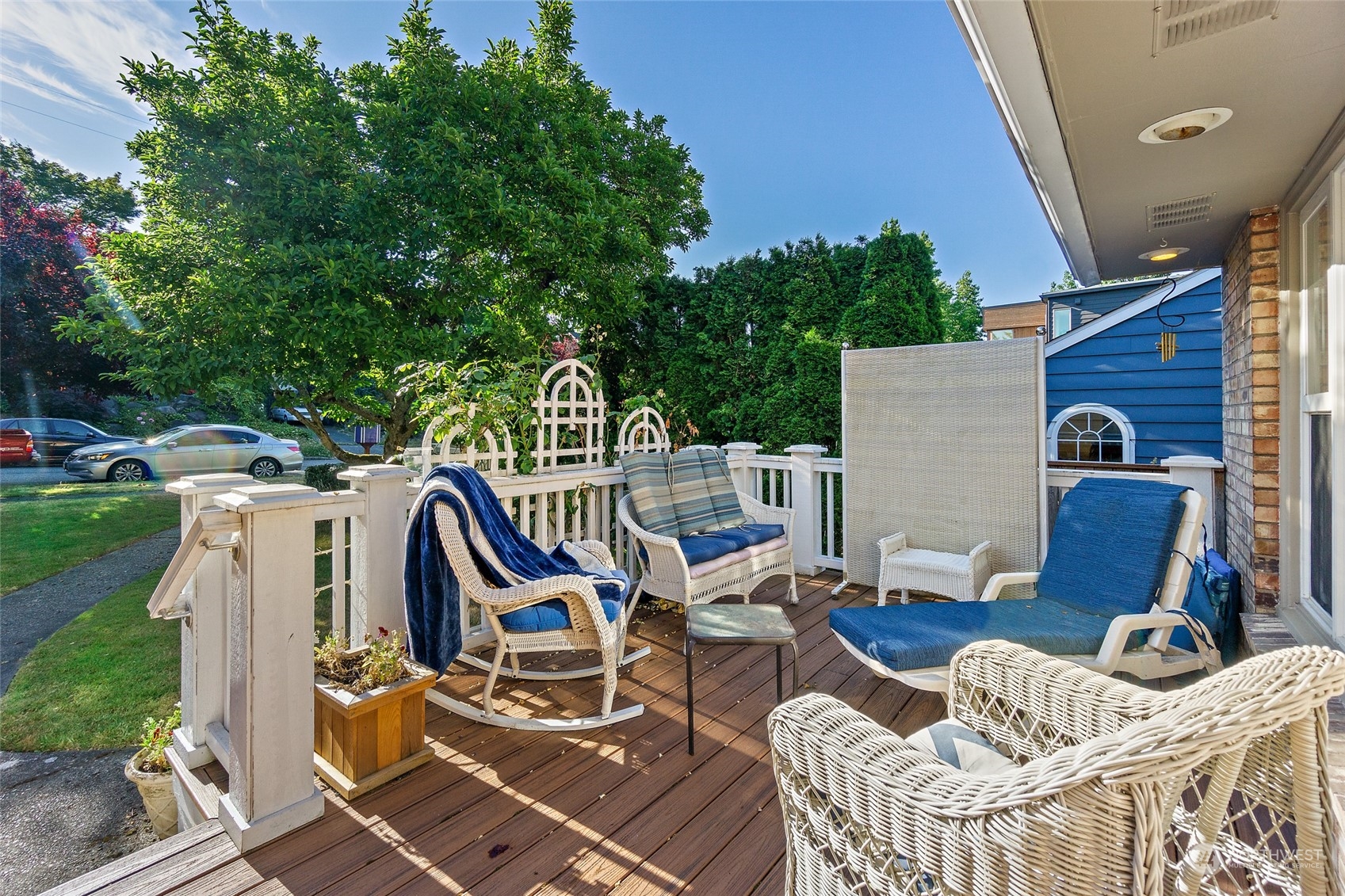 Classic View Ridge home offers 4 bedrooms & 2.5 bathrooms with over 2400 sqft of original features. Spacious living room offers hardwood floors & fireplace. Dedicated dining room w/access to large backyard deck overlooking landscaped yard. Kitchen features original cabinets plus all new appliance package. Enjoy the breakfast nook surrounded by original wallpaper! Two bedrooms on main level. Large main level corner bedroom overlooking lush front yard. Upstairs carpeted with a large landing offering built-in & storage closet. Large bedroom w/fireplace plus second large bedroom on this level. Finished basement has large family room w/fireplace plus dedicated office/work space. Within walking distance of View Ridge Elementary & Eckstein Middle.