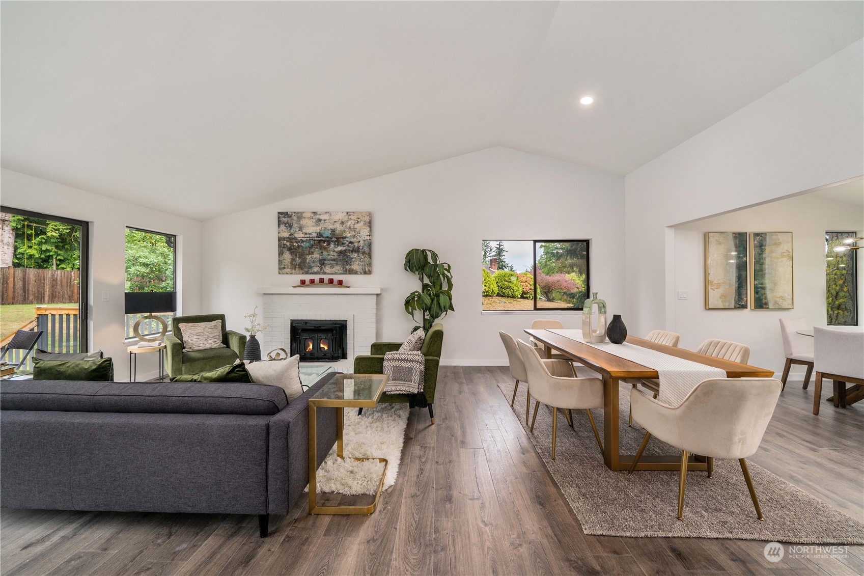 This coveted Kirkland Highlands home is remarkably renovated. Step into the stunning landing with soaring ceilings into main living area with fireplace that flows to adjacent office/den, dining & kitchen with new cabinetry, quartz counters & full height tile backsplash. Owners suite offers a stunning tiled bath with walk in shower. Secondary bedroom & main bath. Downstairs offers generous family room with floor to ceiling fireplace, two additional beds & full tiled bath. Enjoy your private yard from the new deck or lower patio. Perched atop a quaint cul de sac with plenty of parking & just a block to Spinney Homestead Park. Enjoy all that Kirkland living has to offer from nearby beach parks, shopping, dining & more. Just 5 mins to HWY 405.