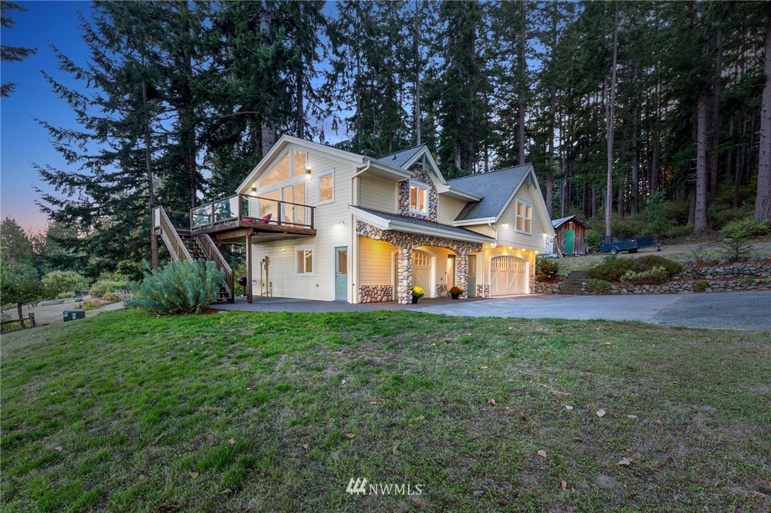 Market Debut! Get ready to map out the future of your dreams with your very own waterfront estate. This waterfront home sale includes 3 parcels totaling 10.4 acres w/ tideland rights & private beach access! Nestled among lush evergreens, the driveway opens up to breathtaking 180° East views including Mount Baker. The custom-built home invites you into a great room w/ vaulted ceilings, environmentally friendly Hevea hardwood floors, & a wall of glass overlooking a tranquil pond & the sparkling waterfront. From the large deck, sit & take in the beauty that surrounds you. Envision building on the adjacent 2-acre waterfront lot or the 5-acre hillside water view lot included w/ the home. So much history here & a once in a lifetime opportunity!!