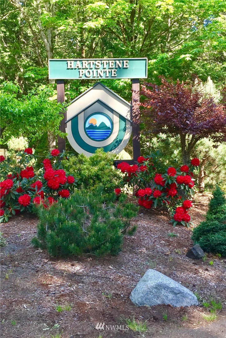 Level building lot with water/power/sewer on lot ready to hookup in Hartstene Pointe’s gated beach community. Survey stakes outline property. Nestled among the trees and ready for your vacation/dream home. Our lots are 90′ circles w/common space between. Just a few steps to the clubhouse, pool, tennis/sport courts, fitness center, mail room, community gardens. Other HP amenities: Miles of saltwater beaches & walking trails, marina (new 12/2021), boat ramp, parks/BBQ/fire pit areas, patrol and more. Be part of our beach lifestyle community.