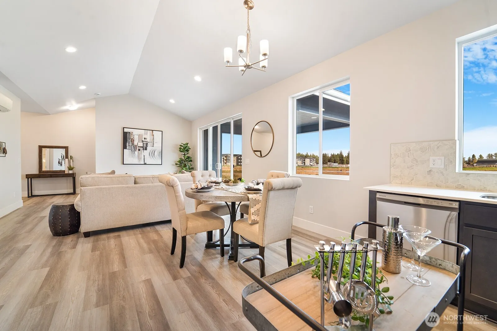 Experience modern living in the Stockton by Azure Northwest Homes. This 3 bedroom, 2 bathroom home combines elegance and thoughtful design. The open-plan living area features an electric fireplace and a double slider to a covered back patio, ideal for entertaining or relaxing. Vaulted ceilings and oversized windows fill the great room with natural light, creating an inviting atmosphere. The kitchen includes 42″ upper cabinets, hard surface countertops, stainless steel appliances and a pantry. Bathrooms offer tiled showers and double sinks for a touch of luxury. A can light package and a landscaped front yard complete this home’s sophisticated appeal.