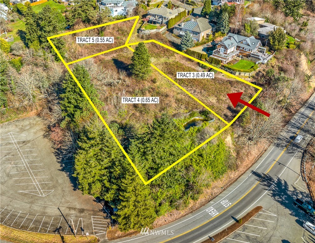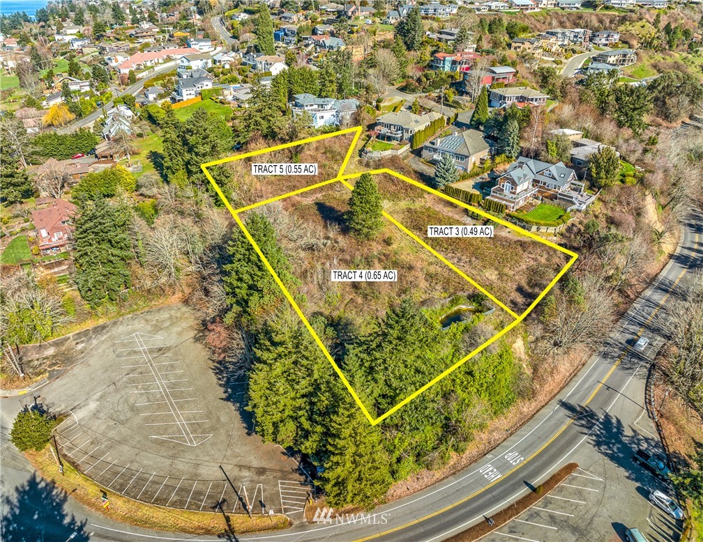 Northeast Tacoma/Browns Point–custom home view property. Tract 3 is 0.49 acre with spectacular 180° unobstructed panoramic views of Mt Rainier, Puget Sound, City of Tacoma, and sunsets! Your dream estate awaits! Stunning–one of the last buildable lots in Browns Point with endless opportunity! Ideal estate setting for three separate custom buildable lots on a dead-end private road, close to schools, overlooking the iconic Cliff House Restaurant, and Tyee Marina. Recorded easement from Kennedy Rd NE for access. Note City of Tacoma 25′ height restriction. All utilities on the property are available: sewer, water, power, phone, cable. OFF MARKET to clear up easement issues.