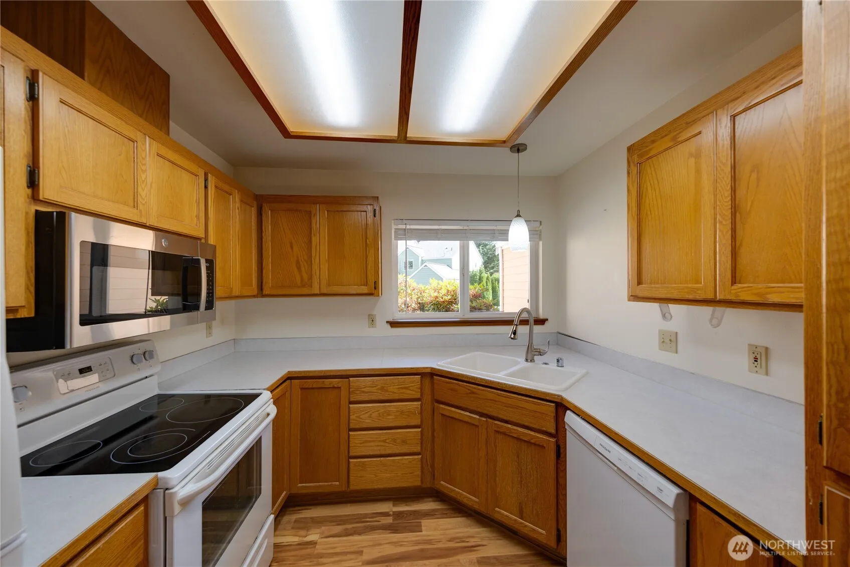 Well-maintained townhouse-style condo in the desirable Birch Tree community. This spacious home features an open-concept living and dining area with durable laminate flooring, a cozy gas fireplace, and access to a private back deck—ideal for relaxing or entertaining. The kitchen offers generous cabinet and counter space. Upstairs, the primary suite includes a full bath and walk-in closet. Attached garage and additional parking in front add convenience. Enjoy low-maintenance living in a quiet setting just minutes from NAS Whidbey, schools, shopping, and downtown Oak Harbor. Perfect for full-time living or a lock-and-leave lifestyle.