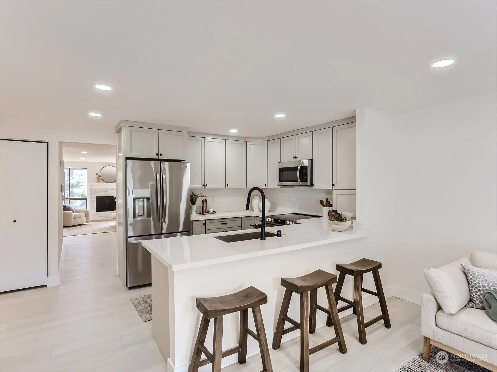 Welcome to your dream home! This rambler style townhouse on 1 level is impeccably remodeled 3 bed 2 bath residence nestled in the heart of a highly coveted neighborhood is a true gem. Boasting contemporary upgrades and thoughtful renovations, this home offers the perfect blend of modern comfort and timeless charm. Step inside and be greeted by an inviting open-concept layout that seamlessly integrates the living, dining, and kitchen areas, creating an ideal space for both relaxing and entertaining. The sleek floors flow throughout, enhancing the sense of continuity and style. New roof installed Bellevue School District.