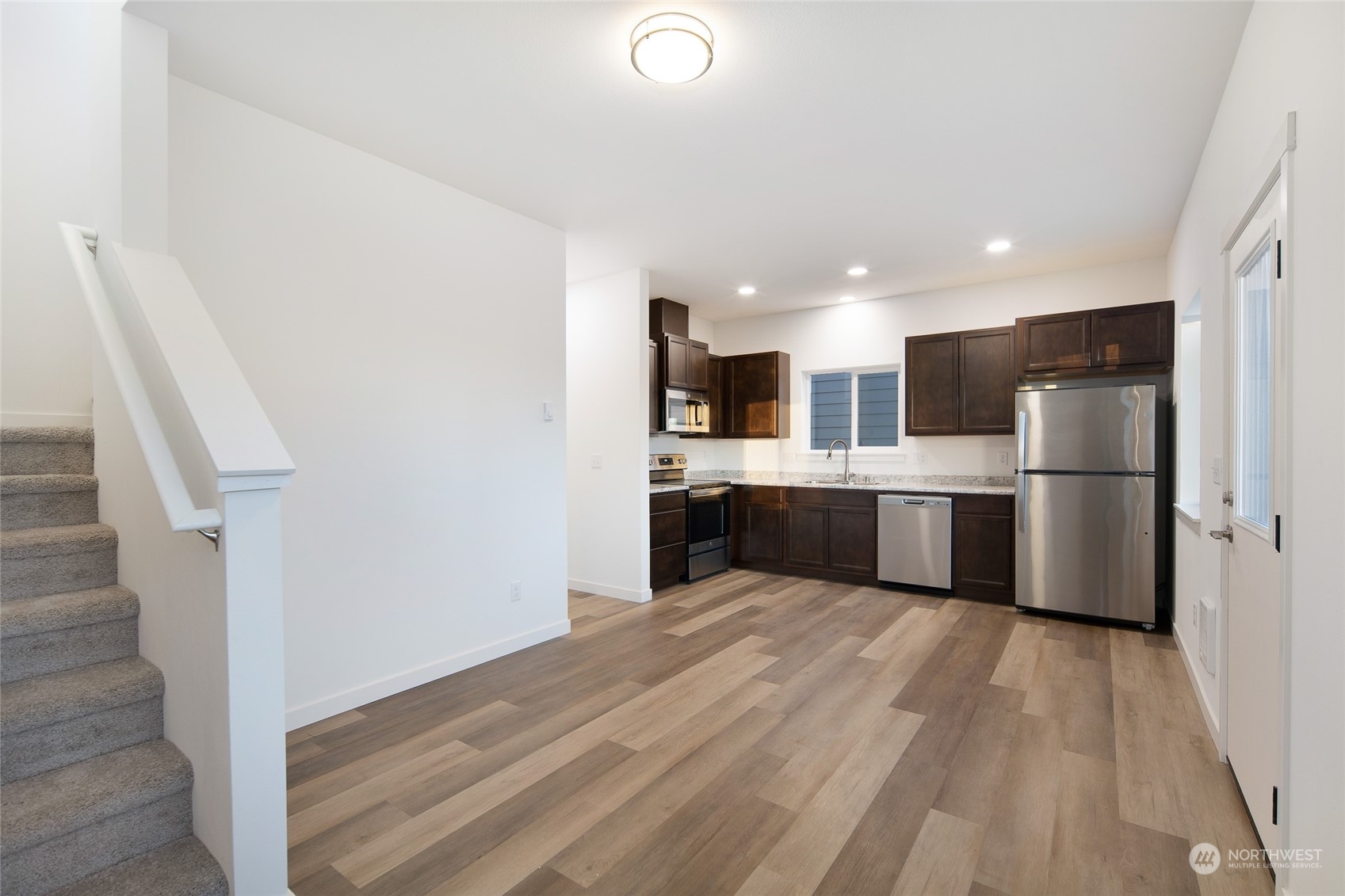 Be the first to live in this brand new finished home on San Juan Island! One of five newly constructed homes, this home offers a bedroom & bath on the main floor w/the primary bedroom (with walk-in closet), additional bedroom, full bath & spacious laundry room on the upper floor. Features include S.S. appliances, vaulted ceilings, durable laminate flooring & high speed fiber optic internet-ready for installation. Extend your living outdoors to the spacious & sunny, south-facing lower and upper decks. Located in close proximity to the core of the town of Friday Harbor, schools & sports fields. Your new home awaits you!