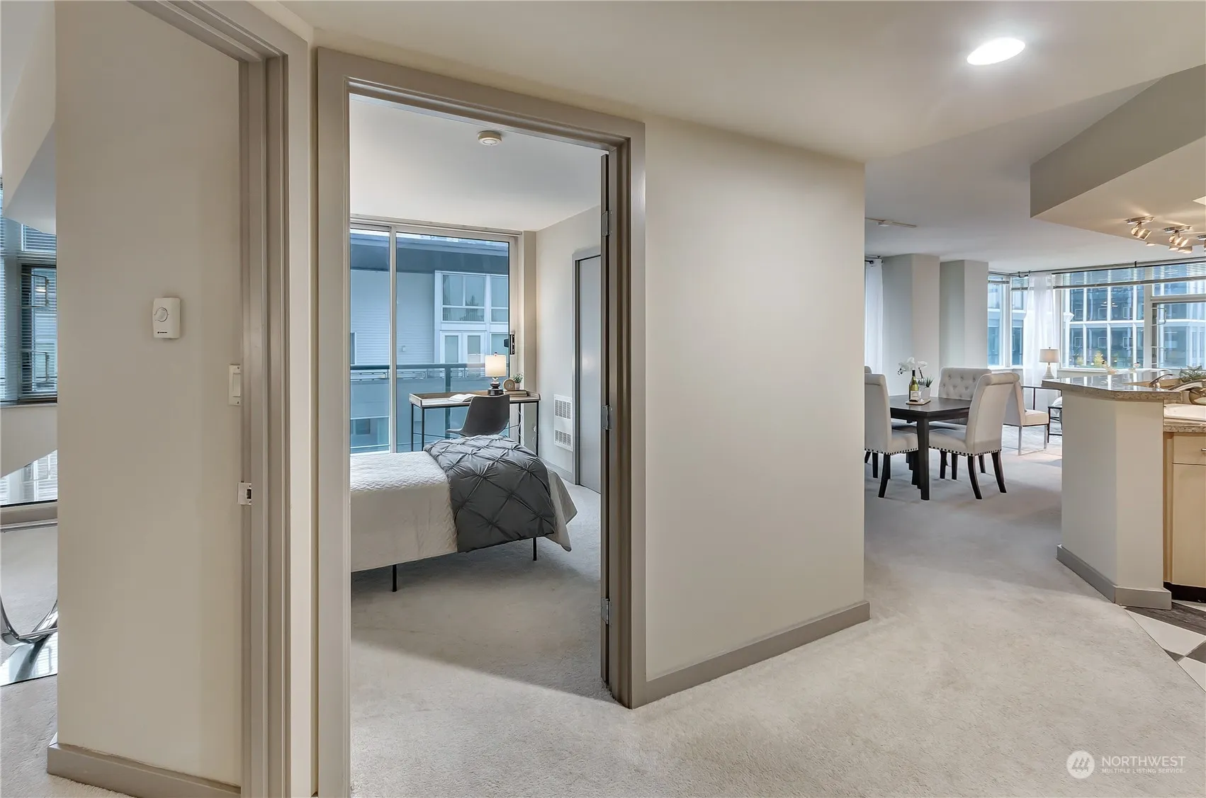 Unbeatable location at the heart of downtown Bellevue! Within a few minutes’ reach of nearby businesses and entertainment, this 2-bedroom, 1.75-bathroom residence boasts a prime setting. The open floor plan showcases a spacious kitchen with stainless steel appliances and granite countertops. This unit is part of a secure complex that offers amenities such as a concierge, owners lounge, fitness room, business center, and a guest suite. Constructed with concrete and steel, the building ensures durability. Top schools of Bellevue school district. Fresh interior paint enhances the appeal. Walking distance to Amazon Bellevue buildings. No rental cap. Seize the opportunity!