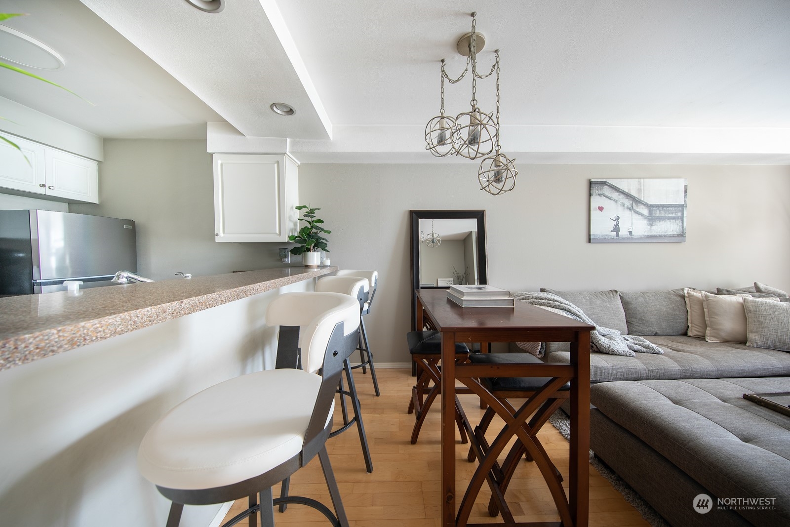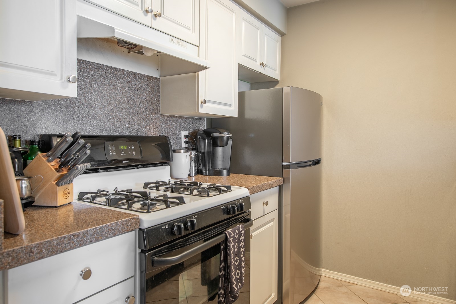 Welcome home to The Uptown! This is a move in ready one bedroom, one full bathroom condo. Light and bright kitchen with eat-in bar and stainless steel appliances. Enjoy the cozy fireplace in the living room. Bedroom has a walk out balcony. Nice sized utility room with washer and dryer! Secure building with indoor mailboxes. Rooftop deck featuring gas BBQ, fantastic views of Sound and city lights. Secured entry and parking. Easy access to downtown and South Lake Union. Enjoy your walkers Paradise with walk score of 91