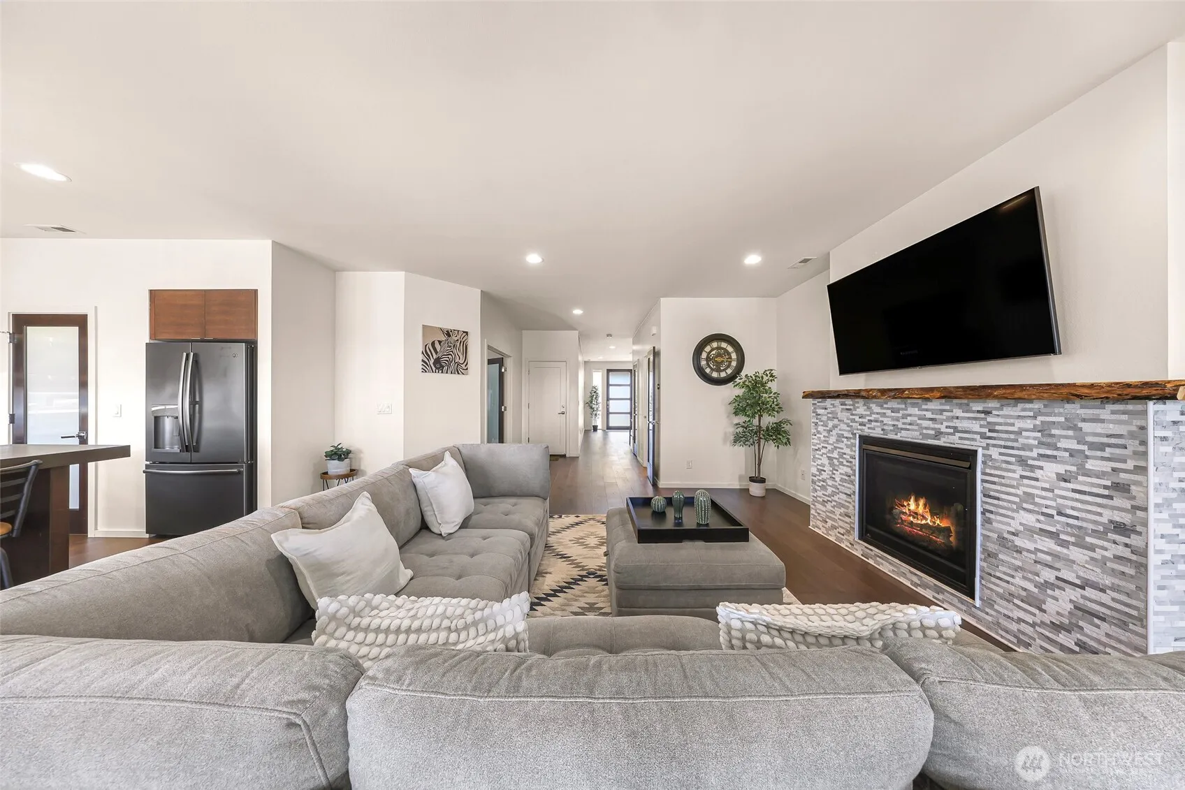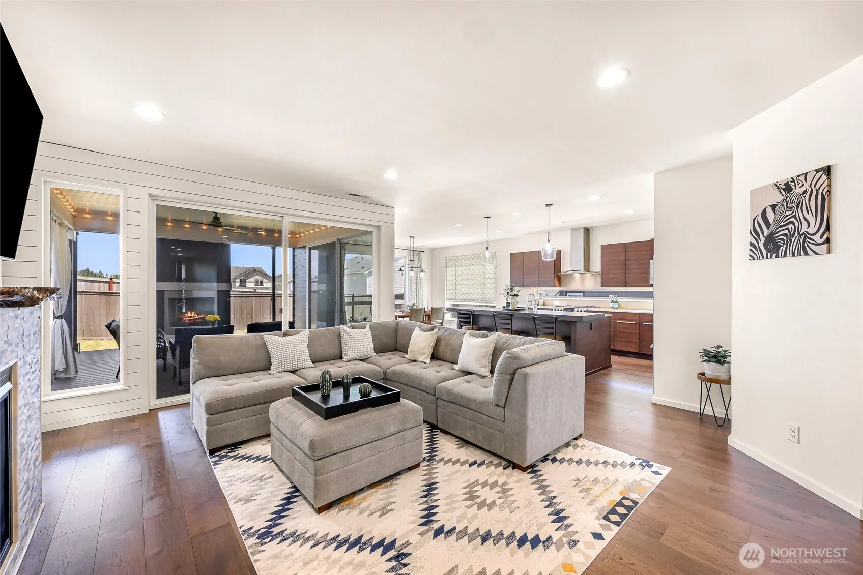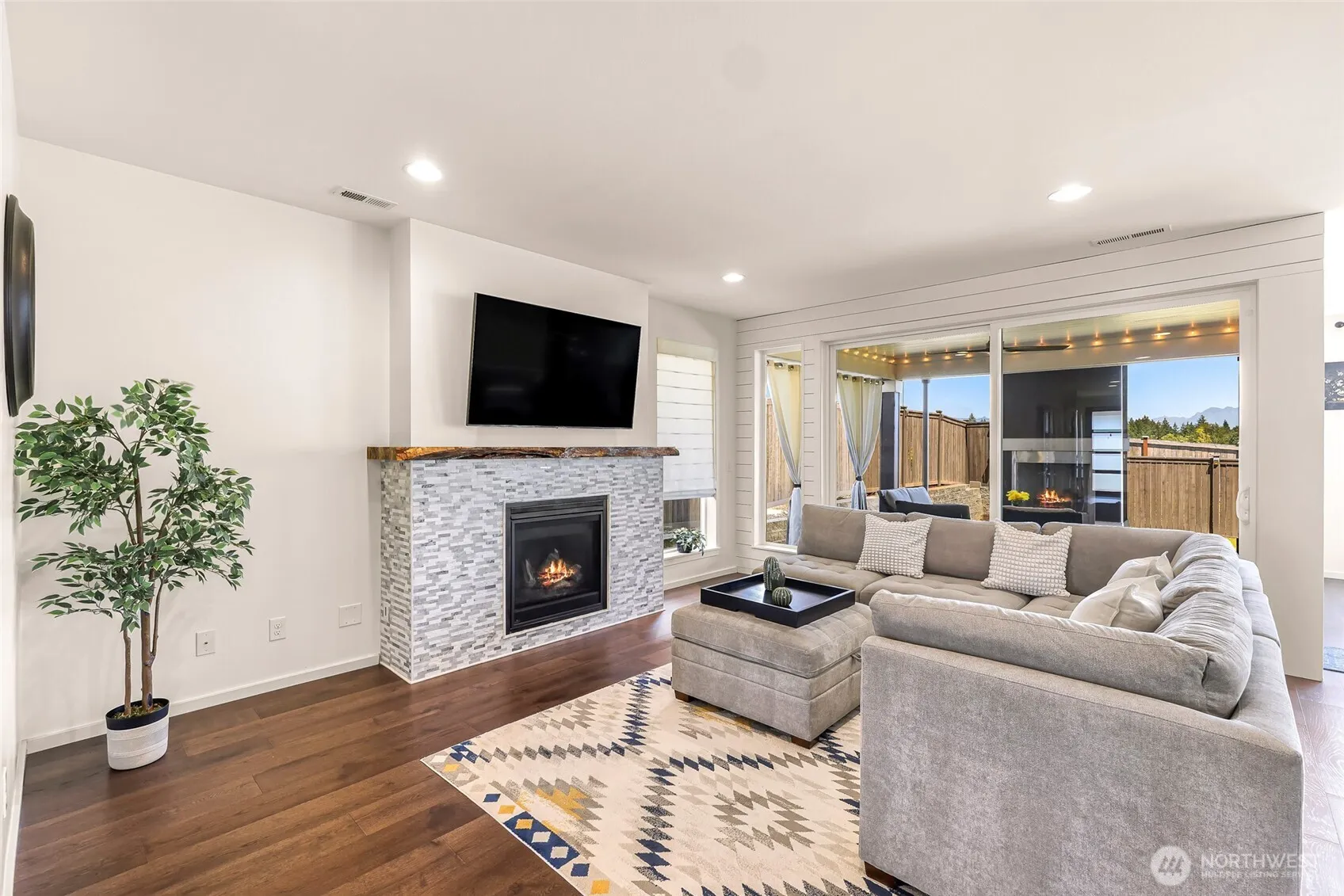 Wonderful MainVue home w/one of the largest back yards in Eaglemont + $20k in upgrades! West facing layout, valley & mountain views, hardwoods, huge island, quartz countertops, walk-in pantry, gorgeous covered composite deck w/fireplace & huge sliders + family room w/gas fireplace & live-edge mantle. Main level den w/built-in Murphy bed & ¾ bath- perfect for guests! Primary bedroom w/fabulous en-suite boasts marble tile, dual vanity & walk-in closet w/built in cabinetry that conveys elegance! 3 more bedrooms up, 2 w/walk-ins & inserts plus bonus room! Central AC, forced air heat, tankless hot water heater, 3 car garage w/ overhead storage, EV charger & all appliances included! Mortgage savings may be available for buyers of this listing
