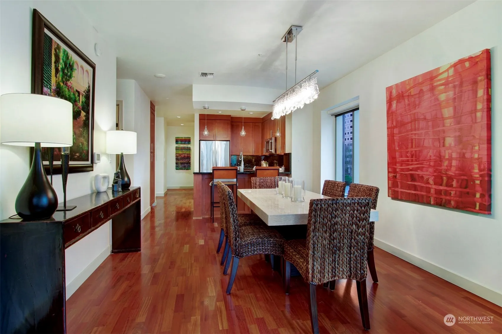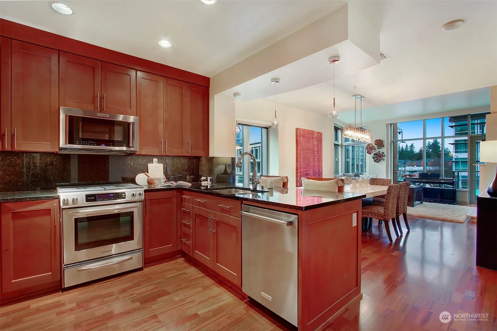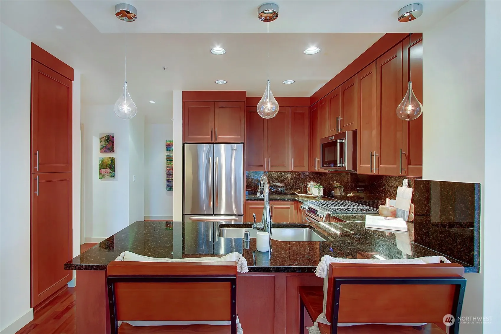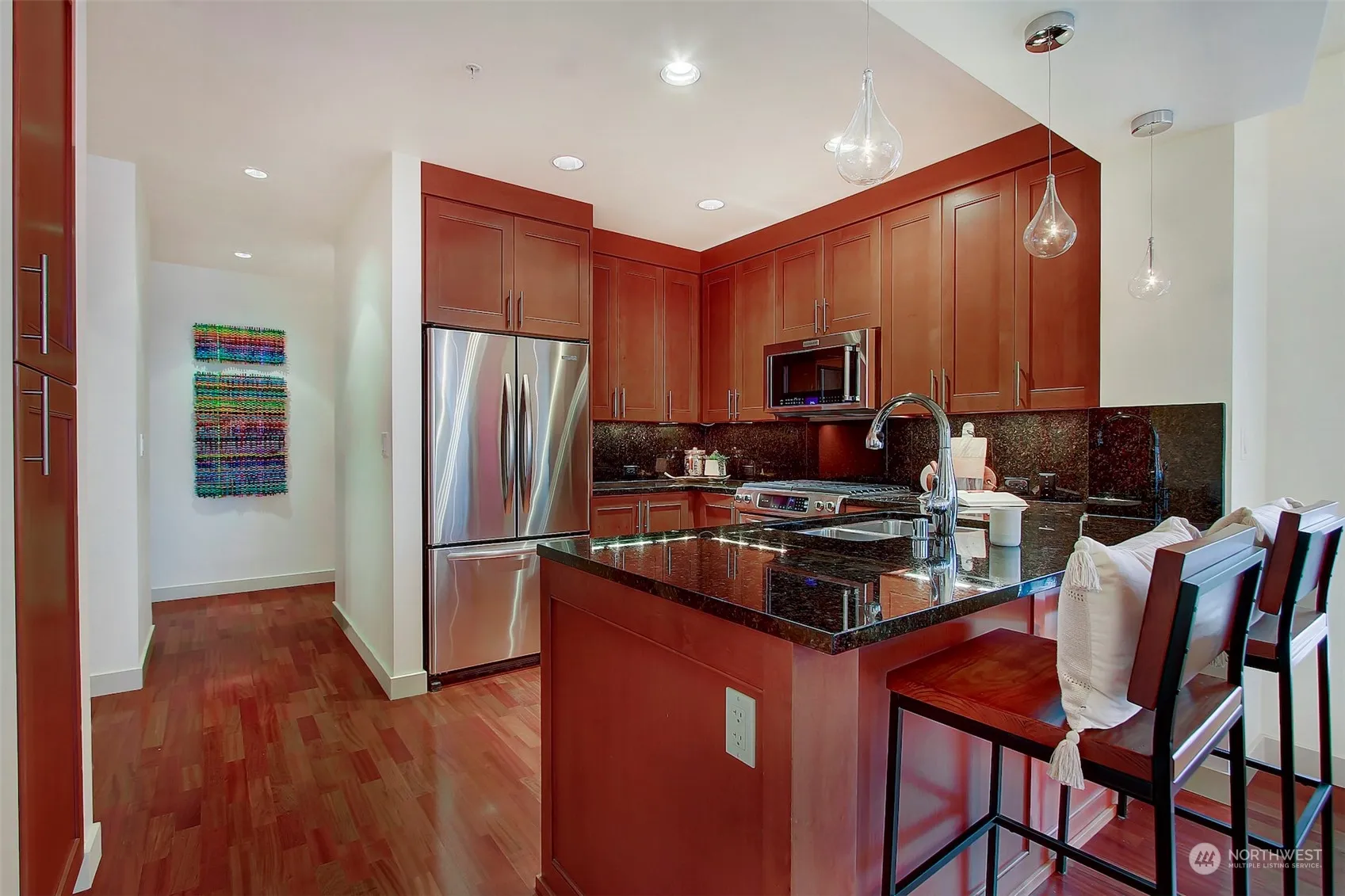 Live the “Lock & Leave” lifestyle to its fullest from this Garden Suite NW corner unit in Downtown Bellevue’s premier building WaSq Towers. This 4th floor luxury condo benefits from its own exterior entrance, & the ease & security of concierge service & lobby. Feel the city around you w/restaurants, shops & parks steps away. Entertain w/a spacious chef’s kitchen, counter seating & dining space w/room for 6-top table. Primary bedroom has a walk-in closet, access to balcony & adjacent bathroom. Corner layout w/office/den complete w/built-ins. A spacious laundry room w/storage make this an ideal investment or downsizing option. WaSq building boasts amenities like gym, owners’ lounge, spa & a secure garage for parking in the center of Bellevue!
