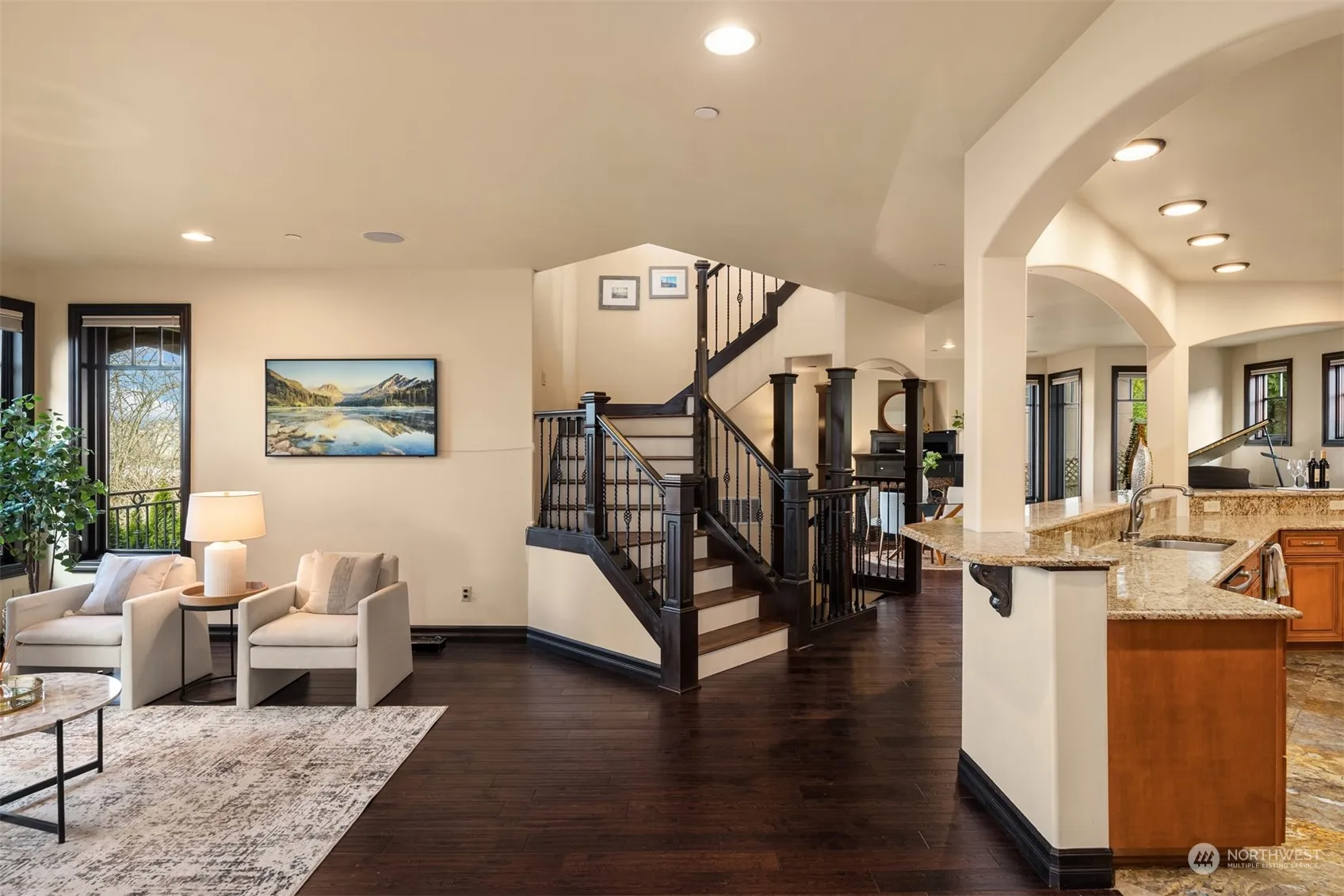 Indulge in luxurious living in this Tuscan-style home just east of Market! Boasting a bright open layout w/ hardwoods, custom iron & glass details, lake & mountain views! Dreamworthy kitchen has it all: Thermador, Bosch & Capital appliances, built-in espresso, double dishwashers, 3 ovens, granite counters, huge eating bar & custom pantry. Upstairs, 3 large bedrooms w/ lake views await, including a primary w/ custom walk-in closet, vanity lounge, view deck & a spa w/ heated floors, jetted tub, dual-head shower. Enjoy 4 decks w/ captivating lake & mountain views! Downstairs offers a large rec room, 4th bed, full bath & 3-car garage w/ gym + heated driveway. Top-rated schools & downtown within mins! Turn key & enjoy the very best of Kirkland!