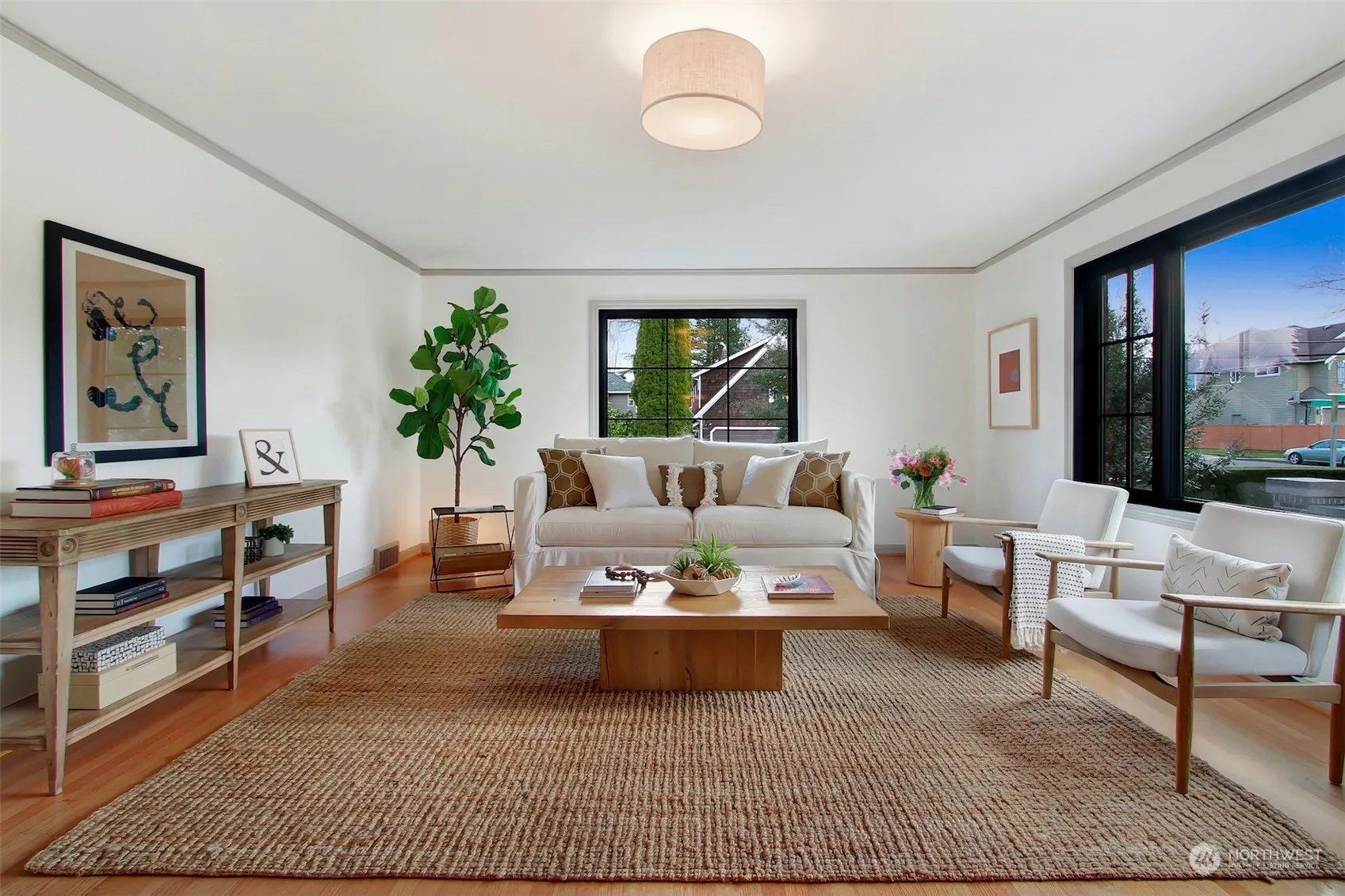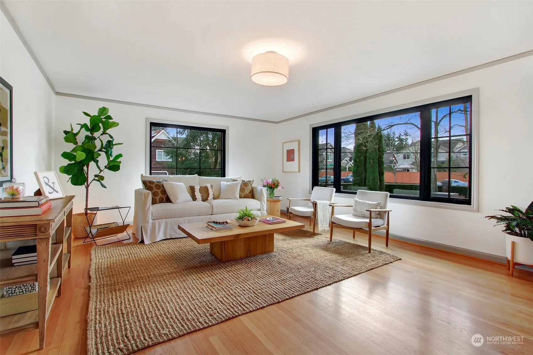 Exceptional Finn Hill home sits on a 11,000+ meticulously designed & maintained corner lot. The home is filled with natural light, pouring through the large windows looking out onto the garden spaces. Modern design touches celebrate restored features of the 1940s. Extensive kitchen renovation incl’s beautiful mosaic marble flooring, hand painted wallpaper, new cabinets, Quartz countertops, walnut shelving & high end appliances. Refinished hardwoods, new windows throughout, freshly painted interior, updated lighting & cabinet hardware. Two bedrooms up, w/ full bathroom, spacious third bedroom on lower level w/ .75 bath. Large workshop/laundry provide extra storage & space to create. Top-rated schools, near I-405, Juanita Beach & DT Kirkland.