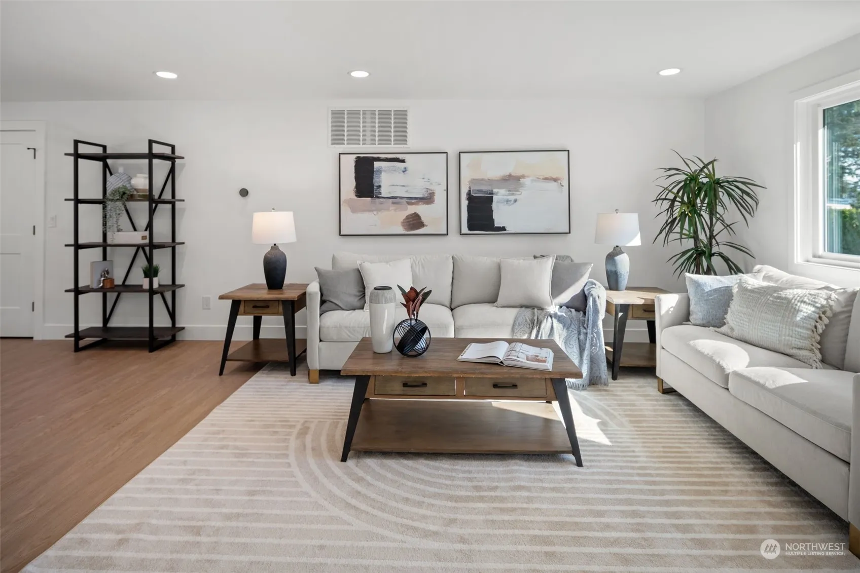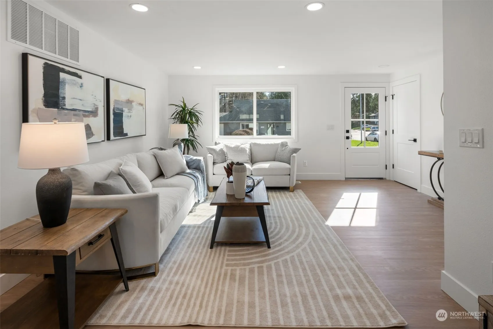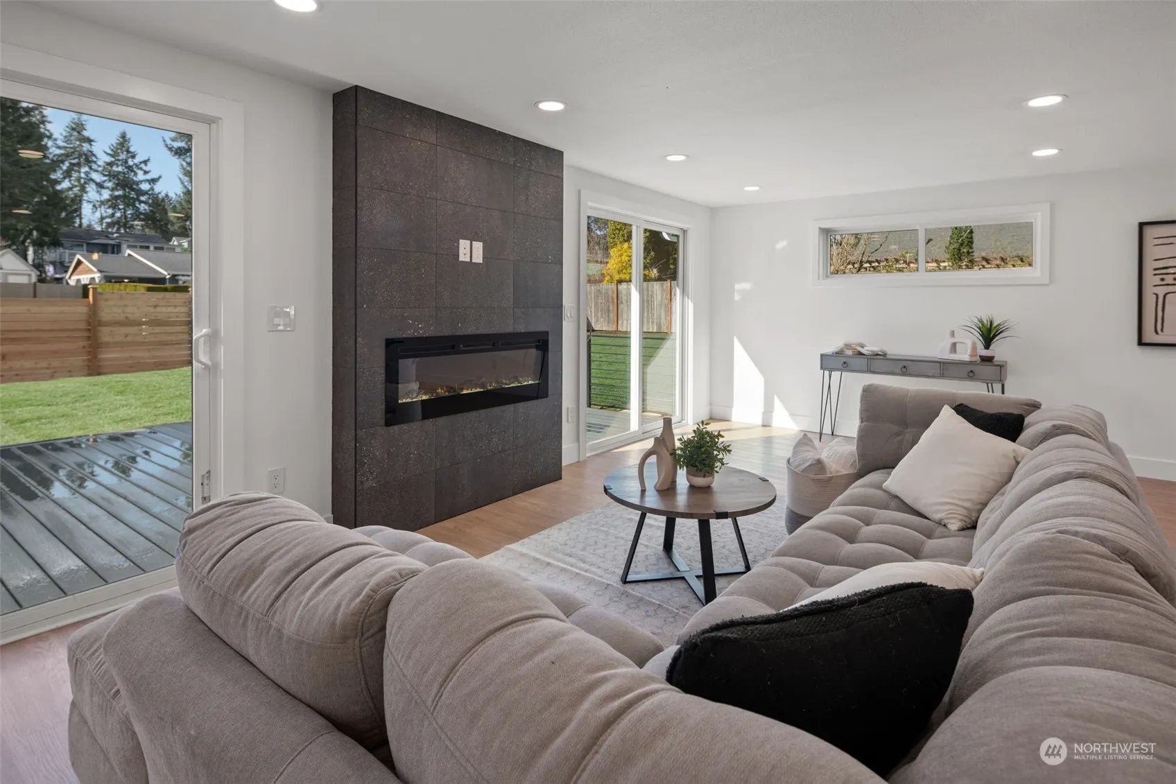 This fully remodeled home sits on an extra large corner lot in Finn Hill. Boasting two primary bedrooms w/ full baths, open spacious kitchen with waterfall island,KitchenAid appliances, modern cabinets, and a convenient pot filler, walk in pantry. The living room features fireplace, double glass doors leading out to the backyard with composite deck. Enjoy the open concept layout, new bathrooms, LVP flooring, and carpeted rooms. Metal roof, new plumbing, electrical, wired for high-speed internet, capacity for a DADU, it’s both modern and functional. New fence, driveway, and landscaping, every detail is attended to. Plus, enjoy smart features like a Nest thermostat and whisper-quiet fans. Don’t miss out on this fully permitted haven.